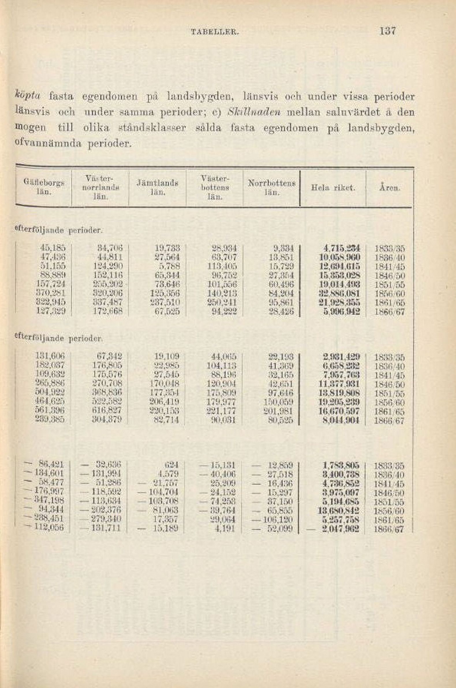 länsvis oeh under samma perioder; <•) Skälnaätfn mellan saluvärdet a den