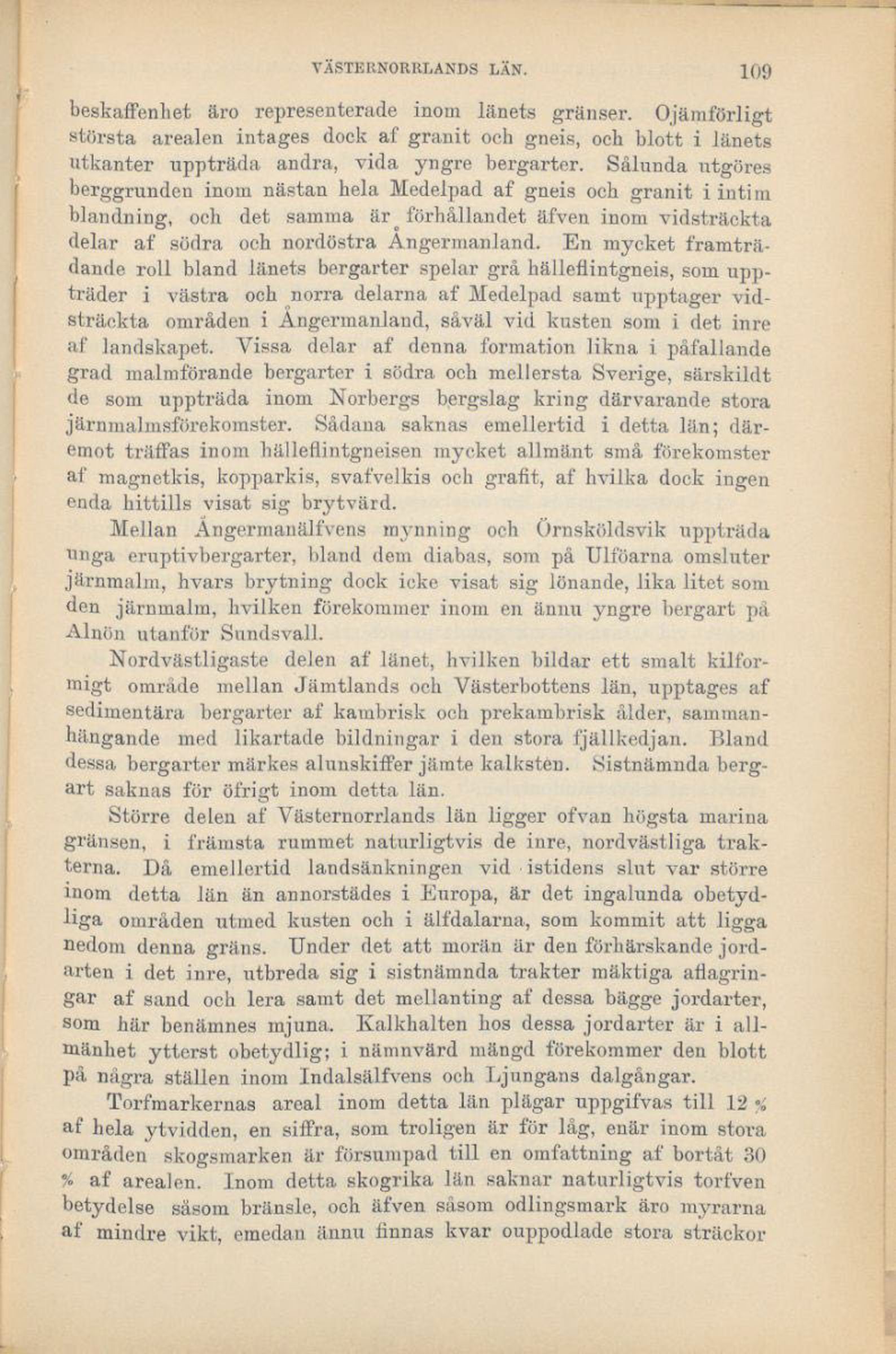 berggrunden inom nästan hela Medelpad af gneis och granit i intim