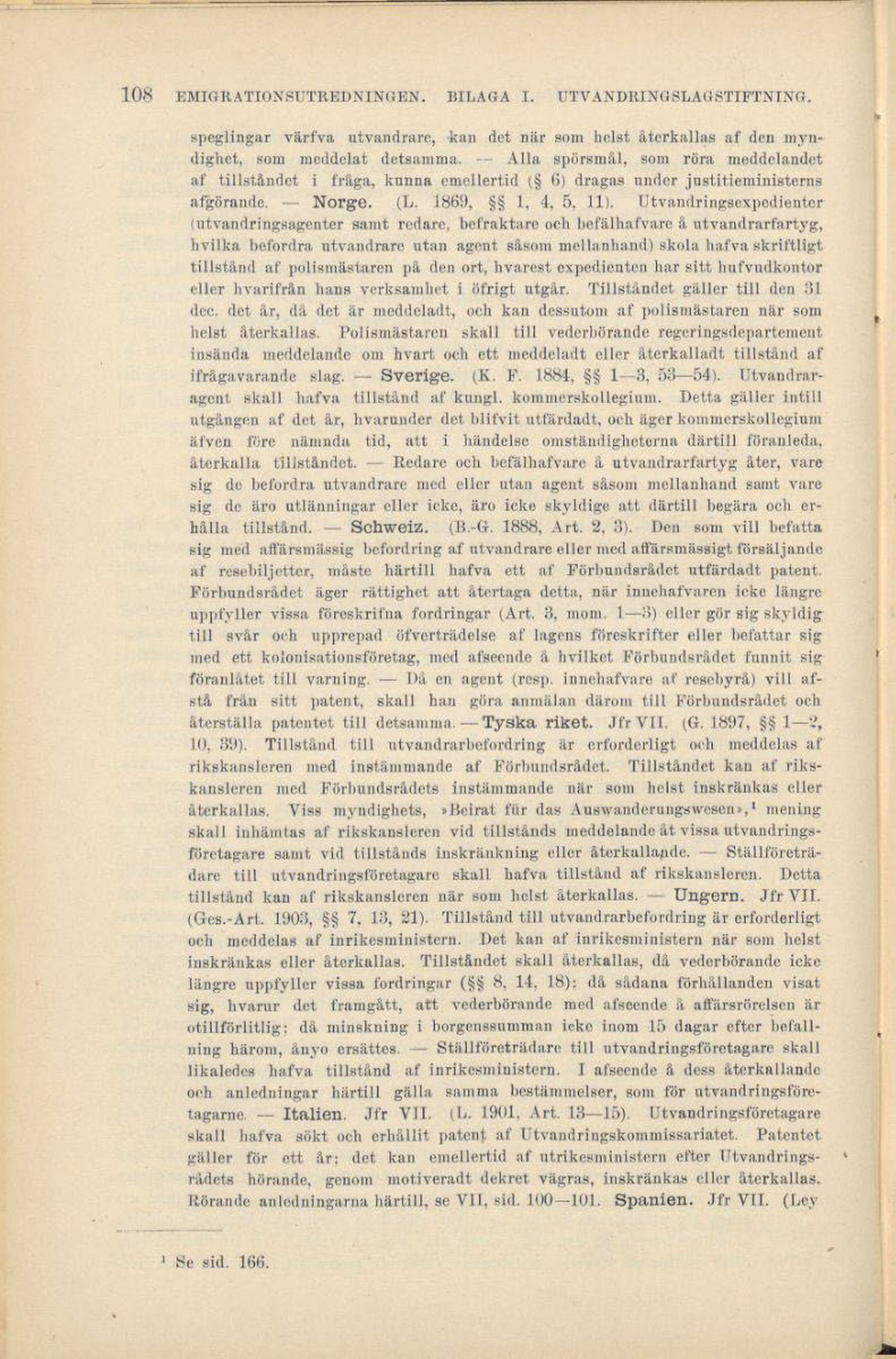 afgörande. — Norge. (L. 1869, §§ 1. 4, 5. 11). Utvandringsexpedienter