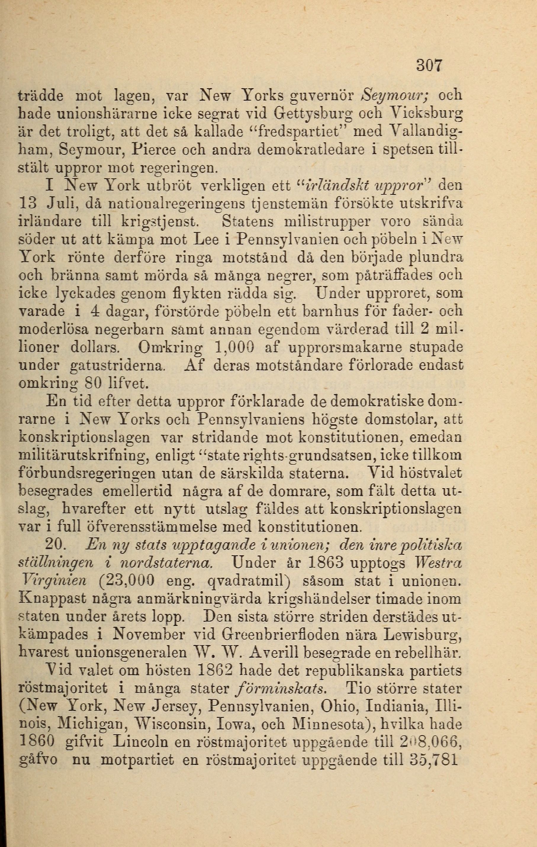ställningen i nordstaterna. Under år 1863 upptogs Westra