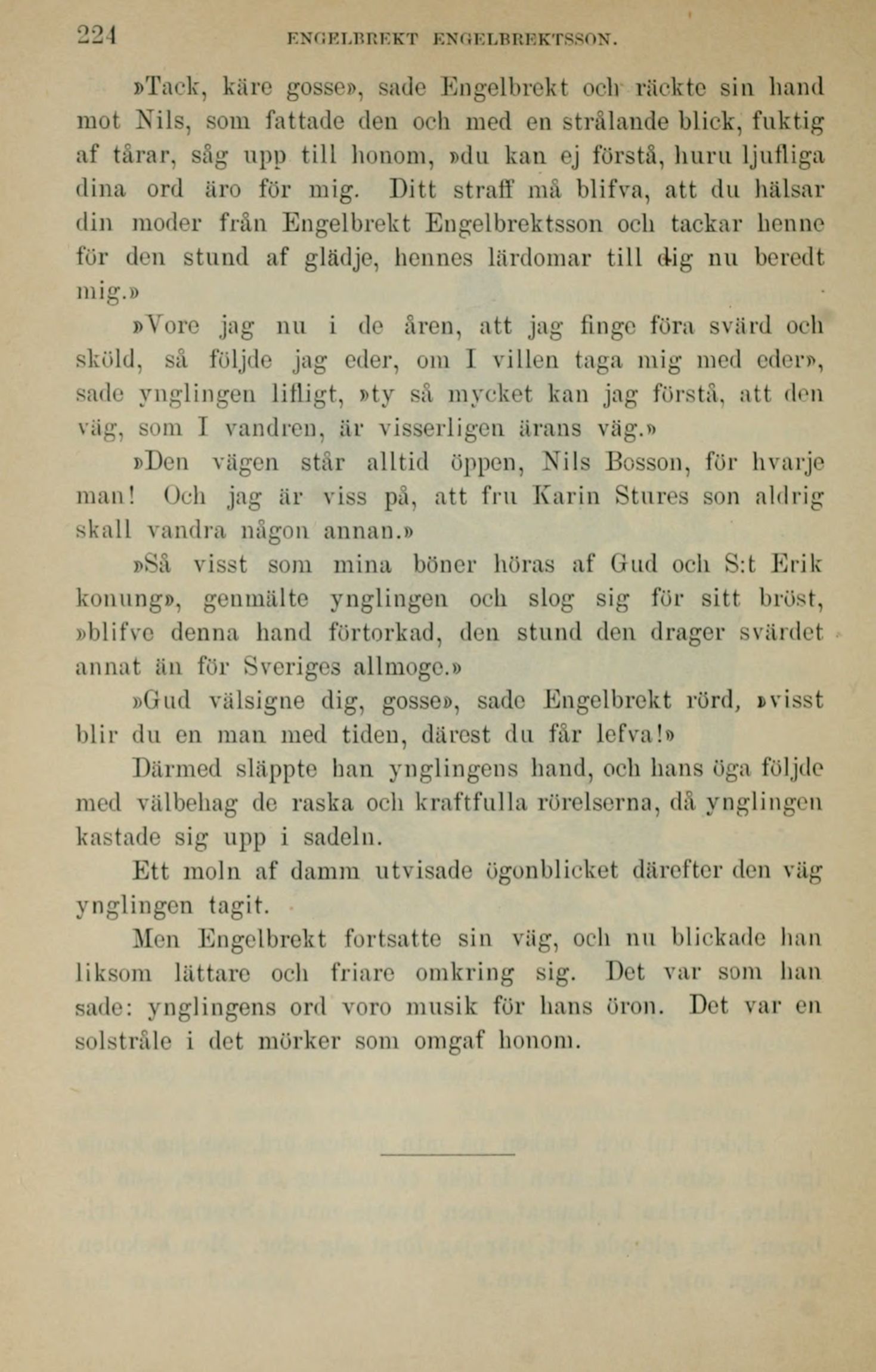 »Gud välsigne dig, gosse», sade Engelbrekt rörd, »visst