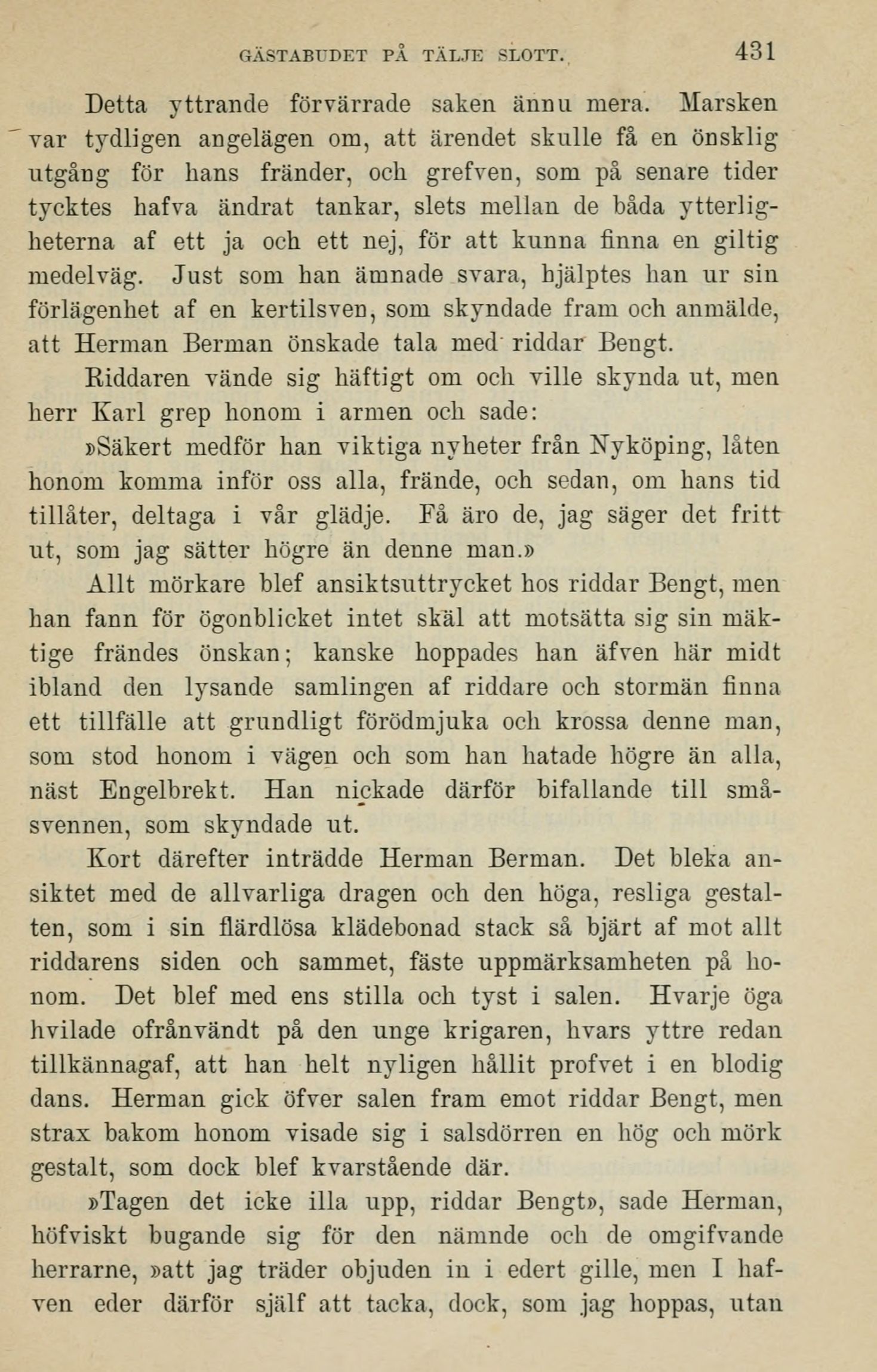 »Tagen det icke illa upp, riddar Bengt», sade Herman,
