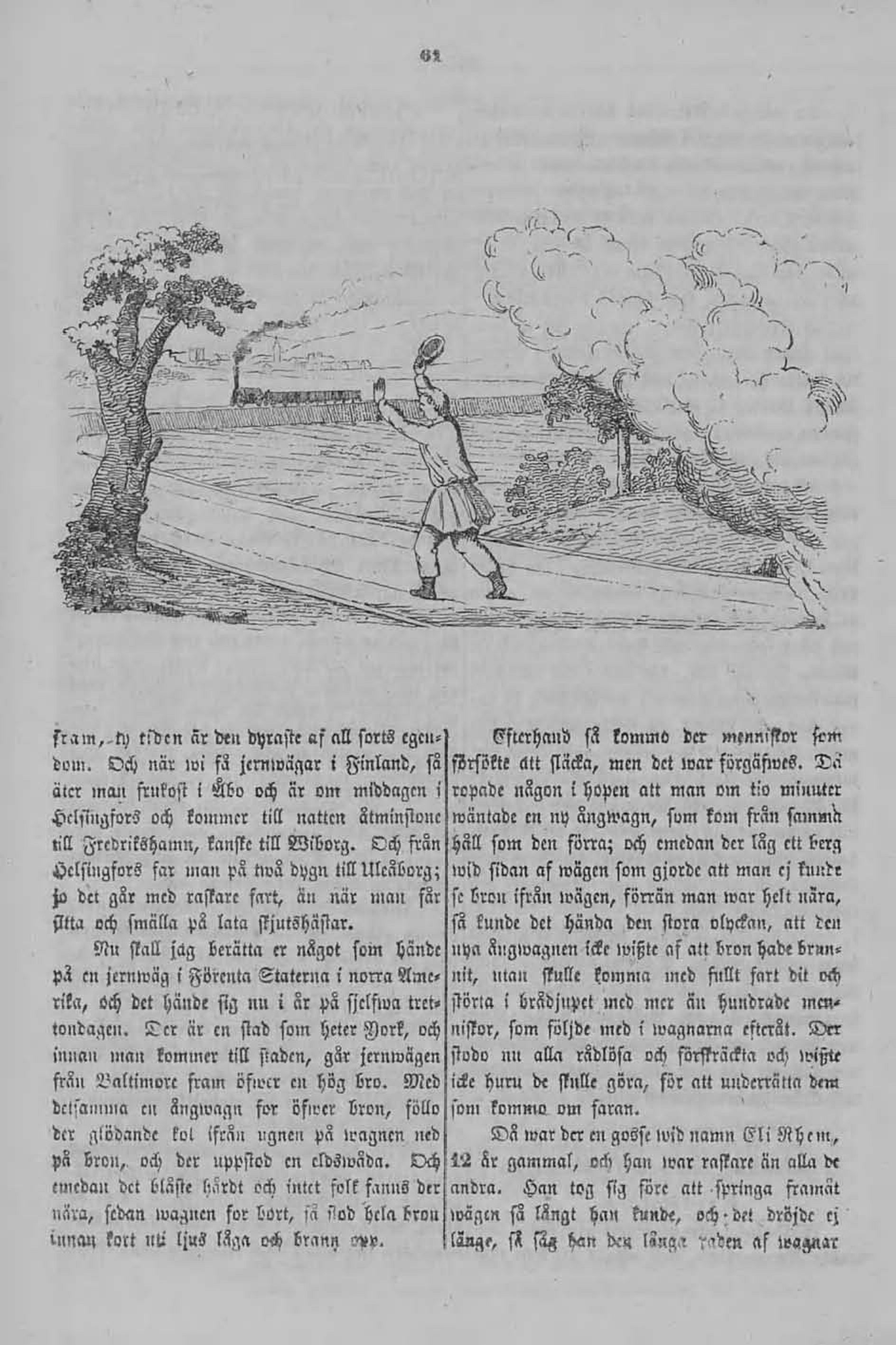 detsamma en ångwagn for öfwer bron, föllo