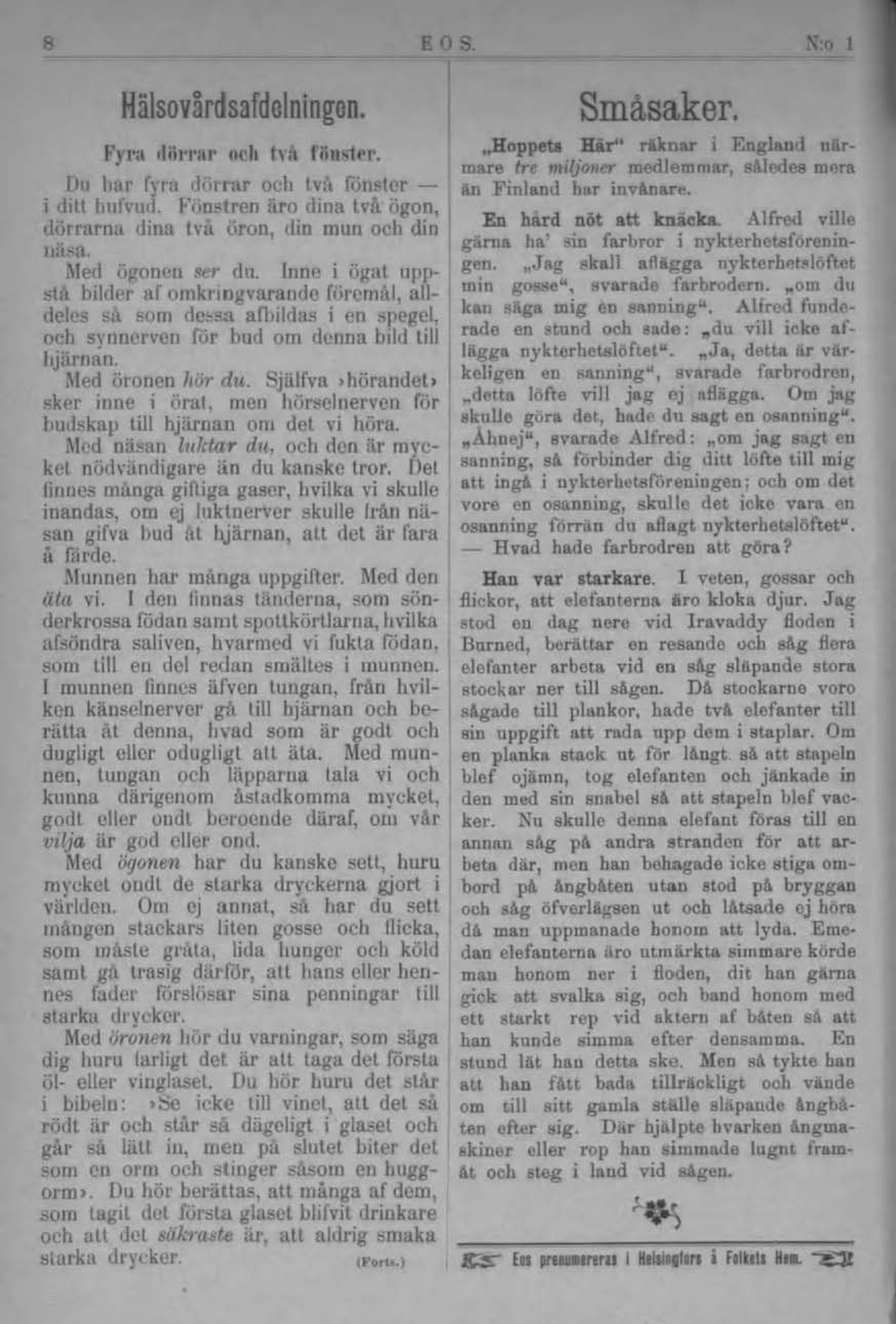 Eos prenumereras i Helsingfors i Folkets Hem. |