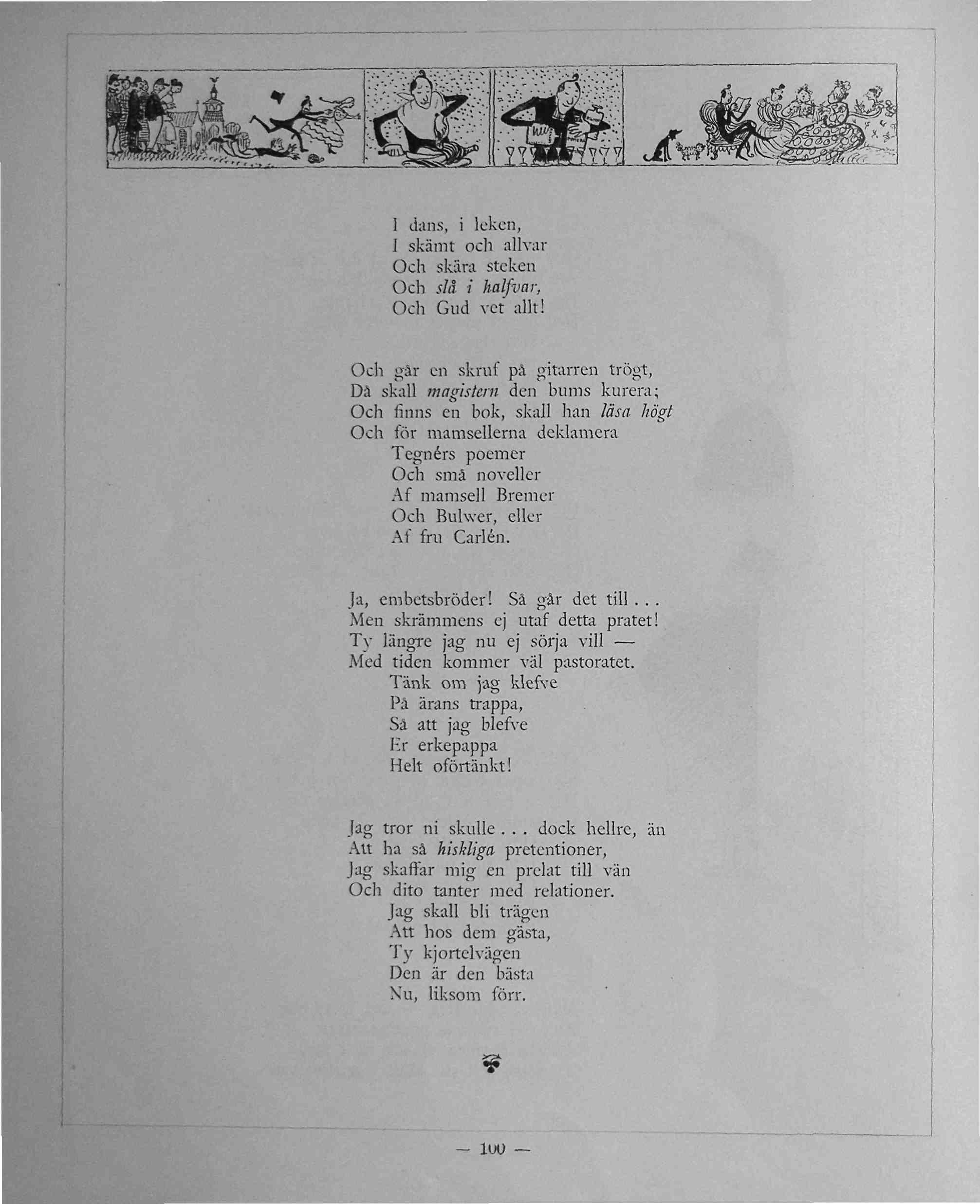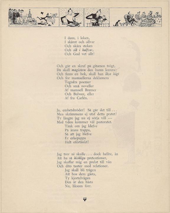 I dans, i leken, Och går en skruf på gitarren trögt, Ja, embetsbröder! Så går det till ... Jag tror ni skulle ... dock hellre, än |