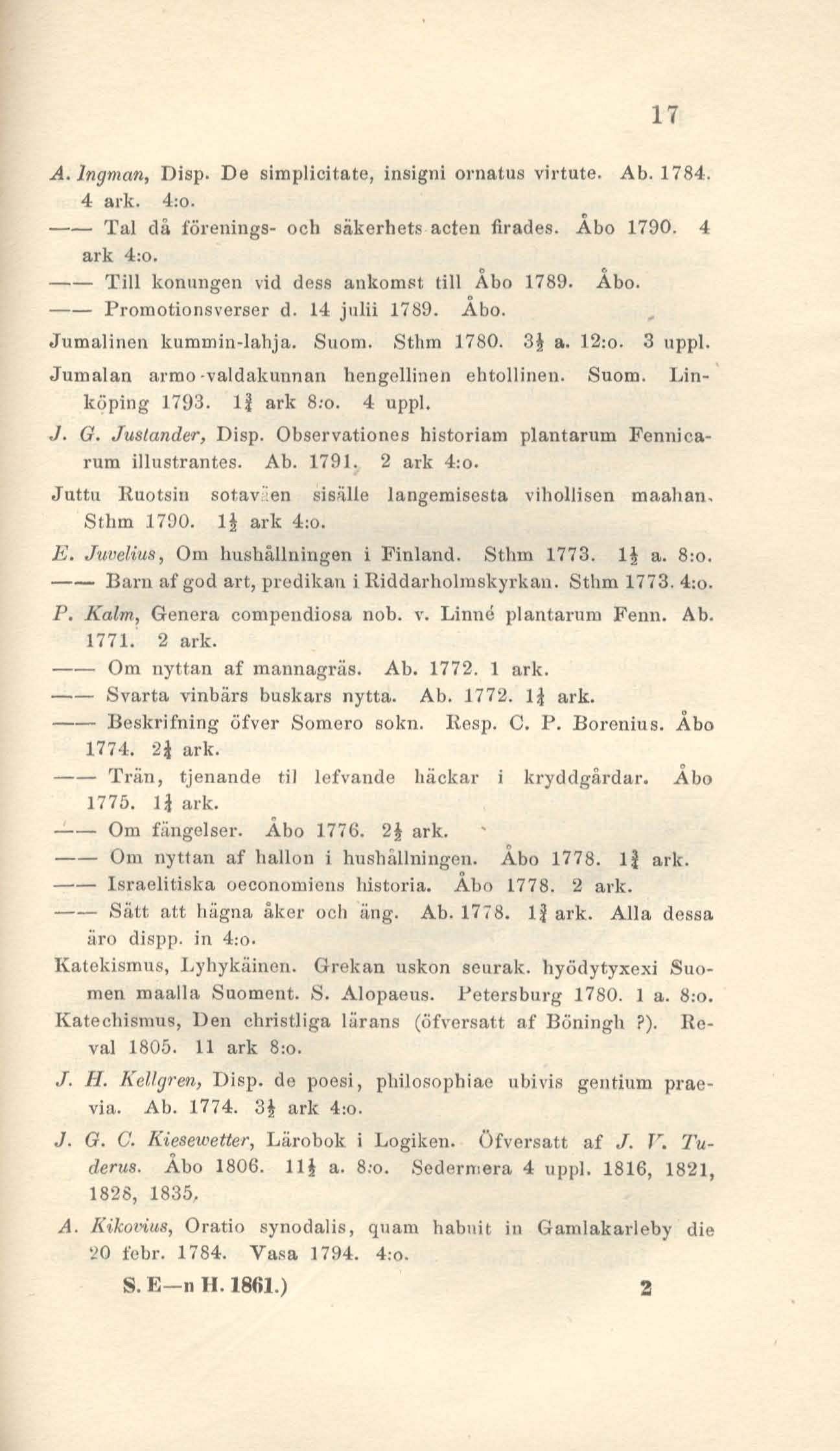A. Ingman, Disp. De sixnplicitate, insigni ornatus virtute. Ab. 1784.