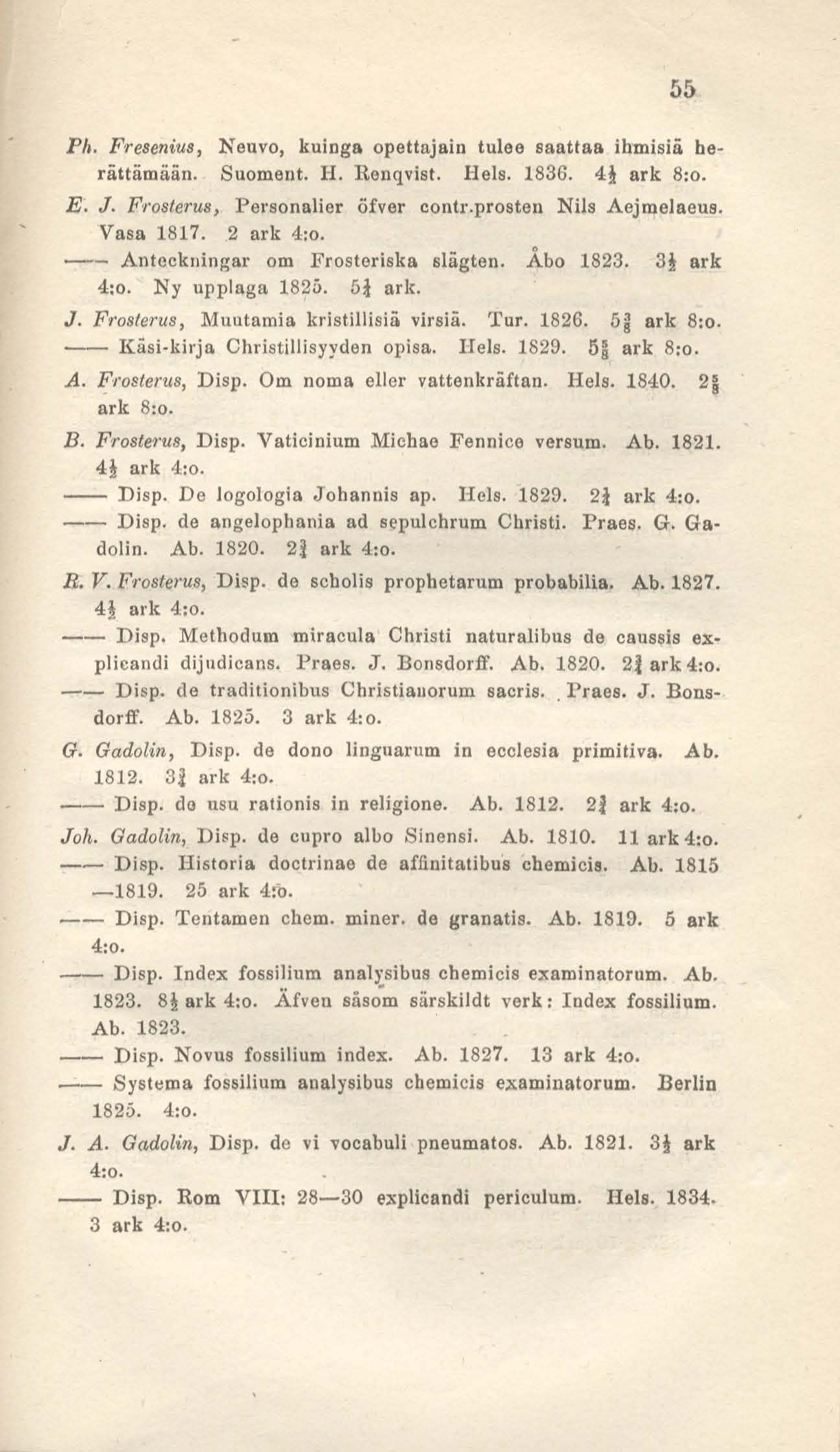 J. Frosterus, Muutamia kristillisiä virsiä. Tur. 1826. öj| ark 8:o.