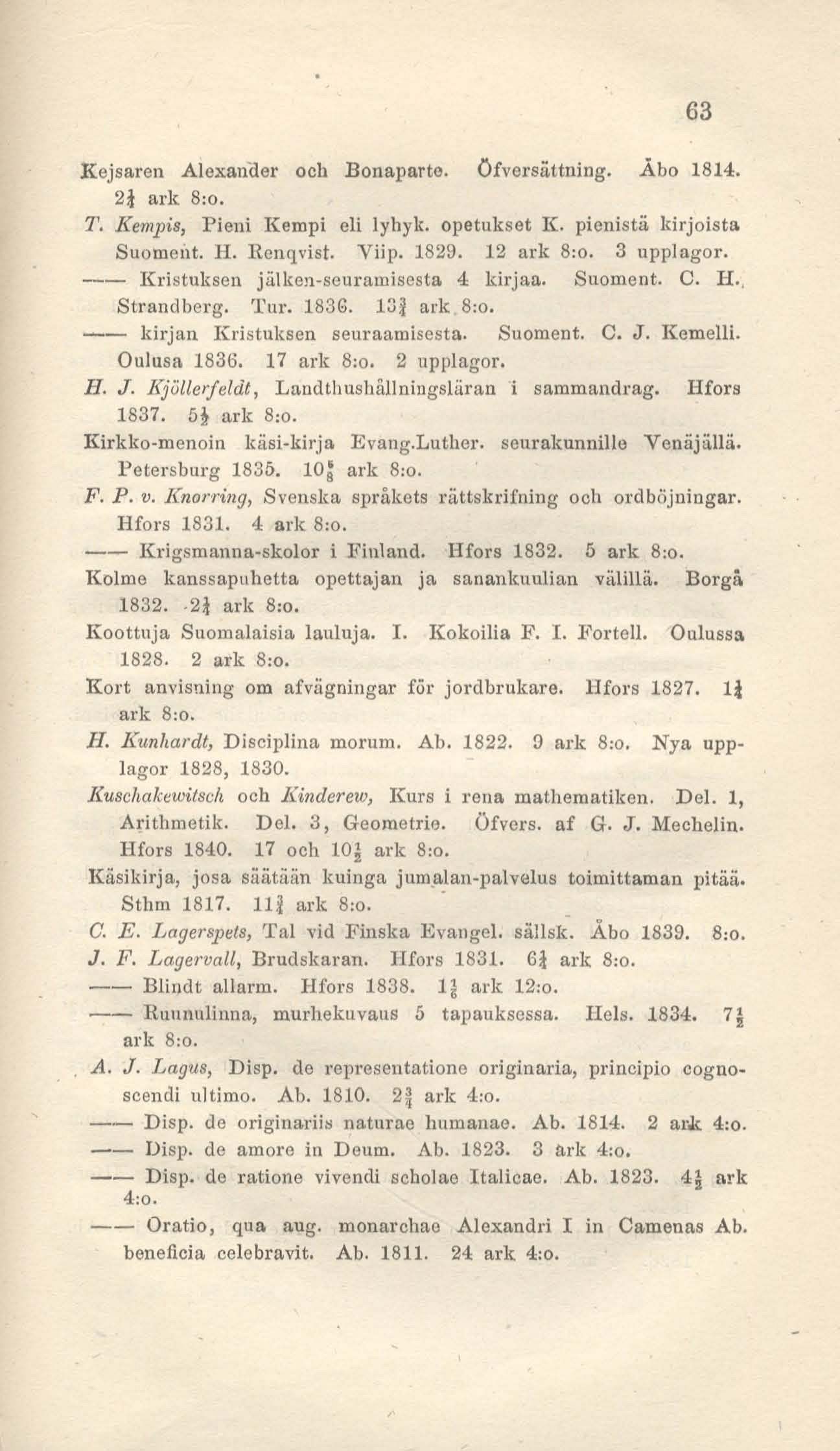 ––Krigsmanna-skolor i Finland. Hfors 1832. 5 ark 8:o.