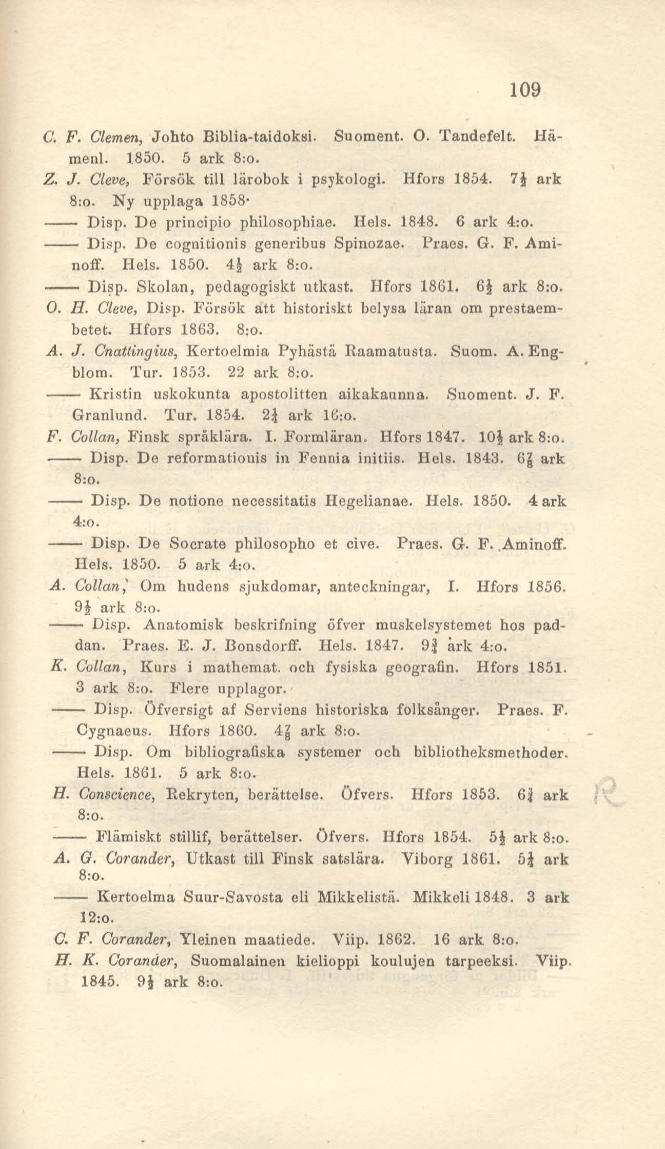 –––- Disp. De principio philosophiae. Hels. 1848.	6 ark 4:o.