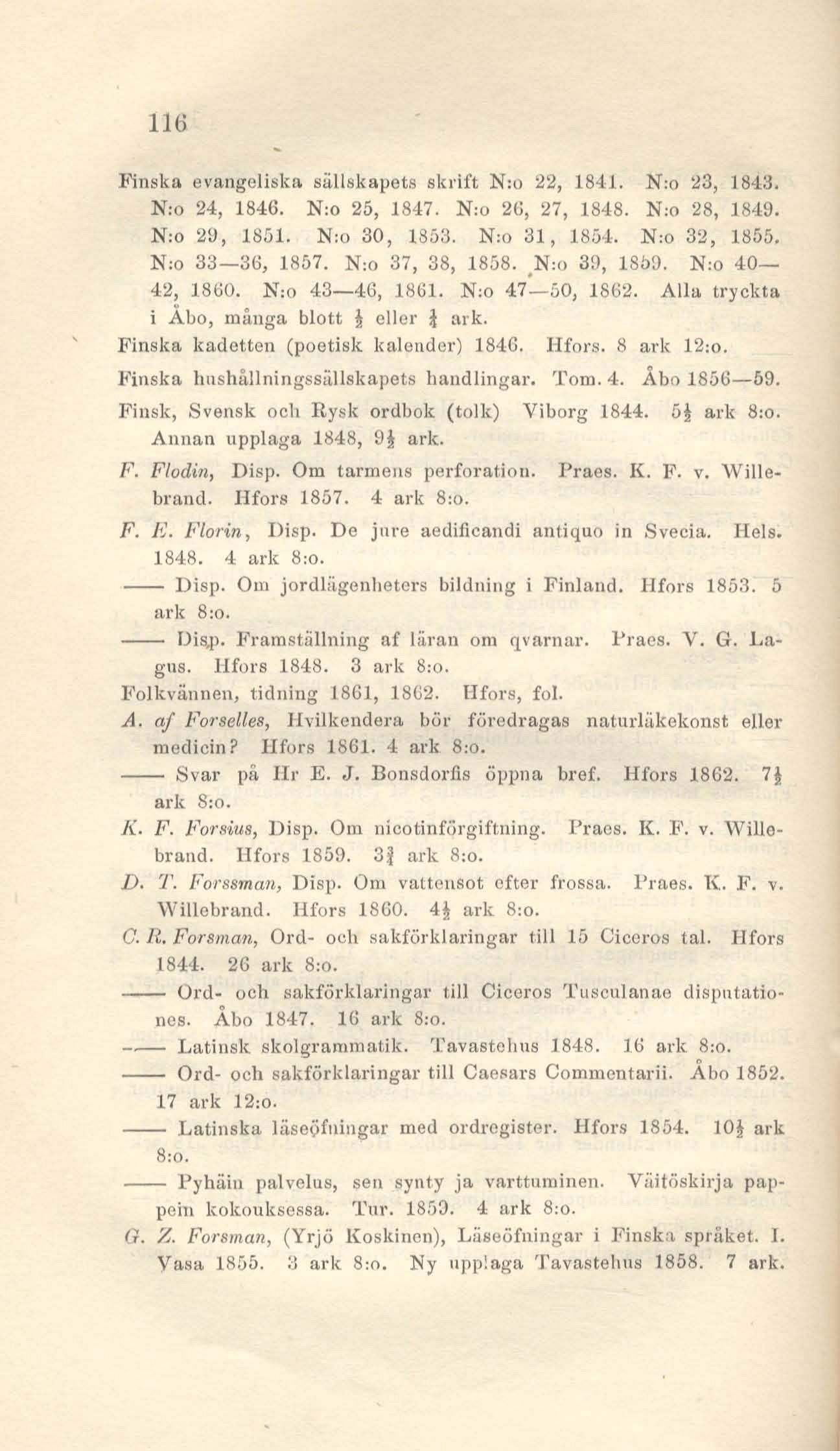 –– Disp. Om jordlägenheters bildning i Finland. Hfors 1853. 5