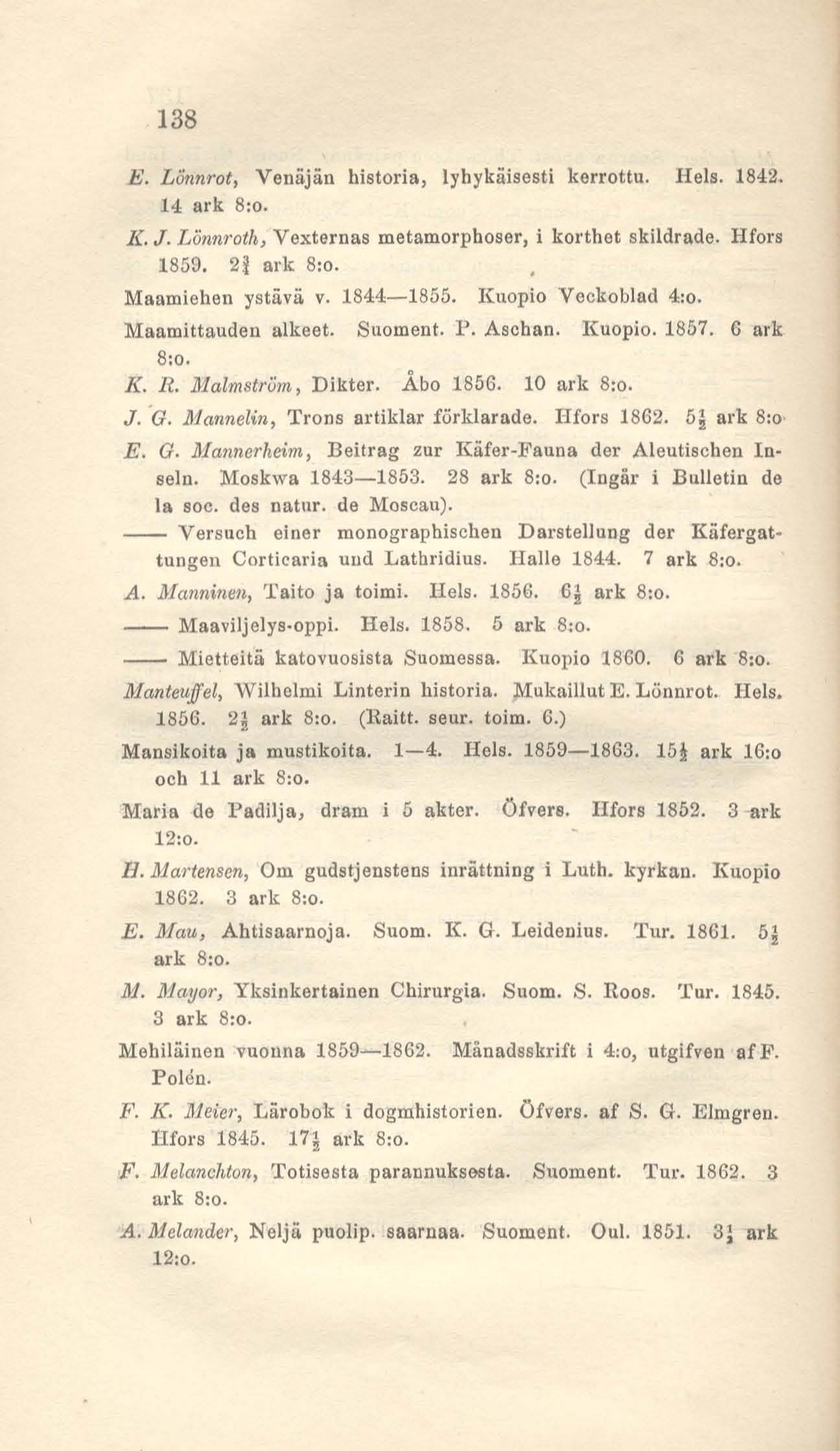E. Lönnroti Venäjän historia, lyhykäisesti kerrottu. Hels. 1842.