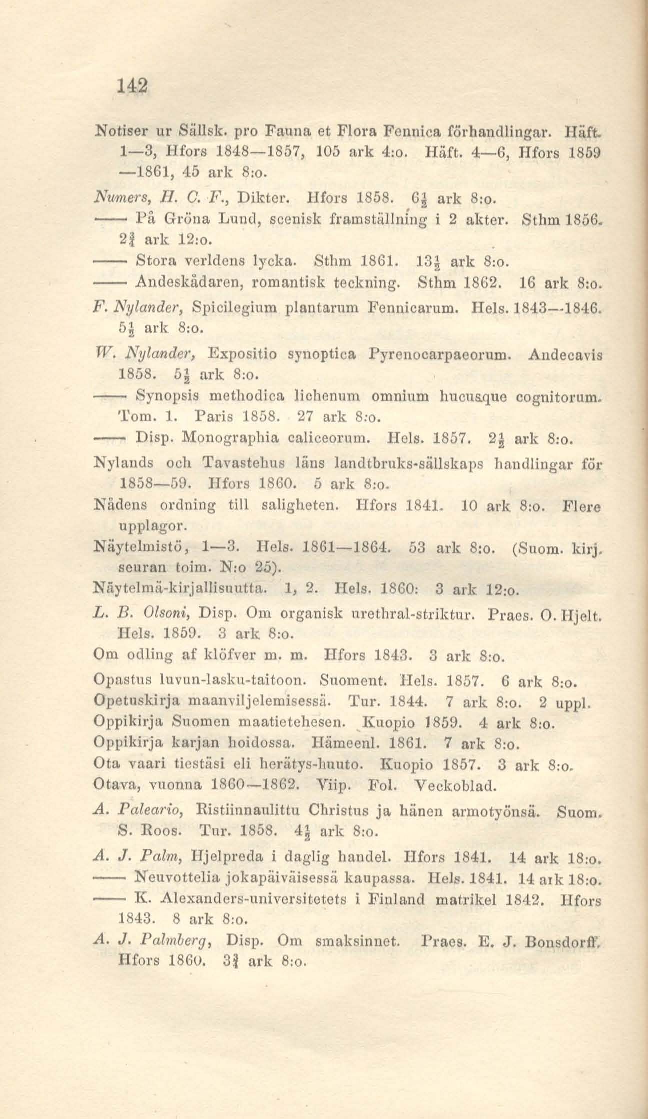 1—3, Hfors 1848—1857, 105 ark 4:o. Häft. 4—6, Hfors 1859