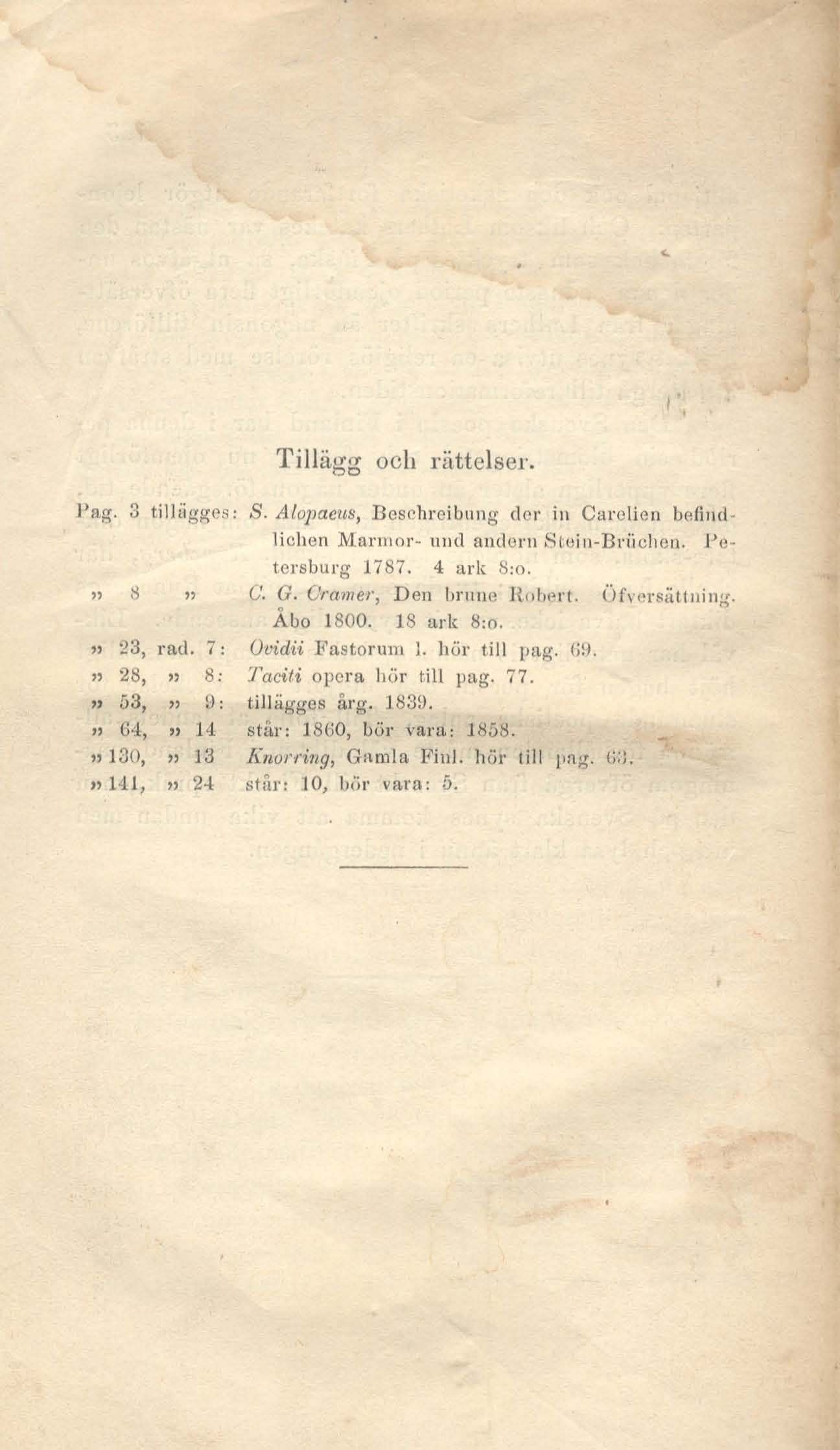 Pag. 3 tillägges: S. Alopacus, Beschreibung der in Carolien