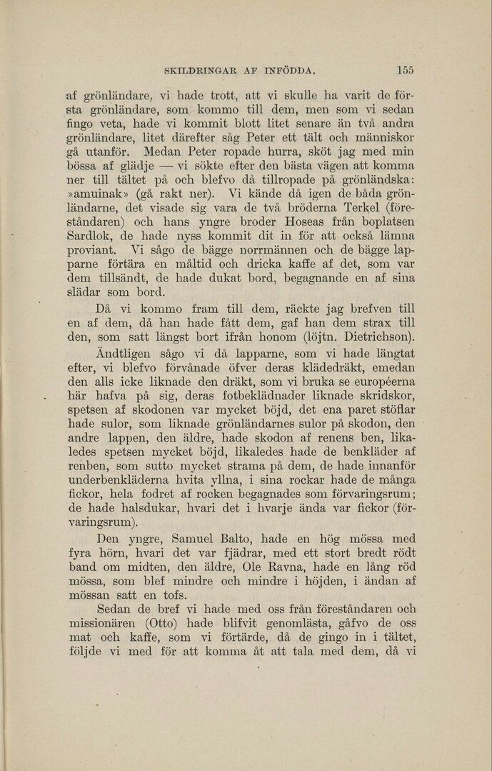 ner till tältet på och blefvo då tillropade på grönländska: