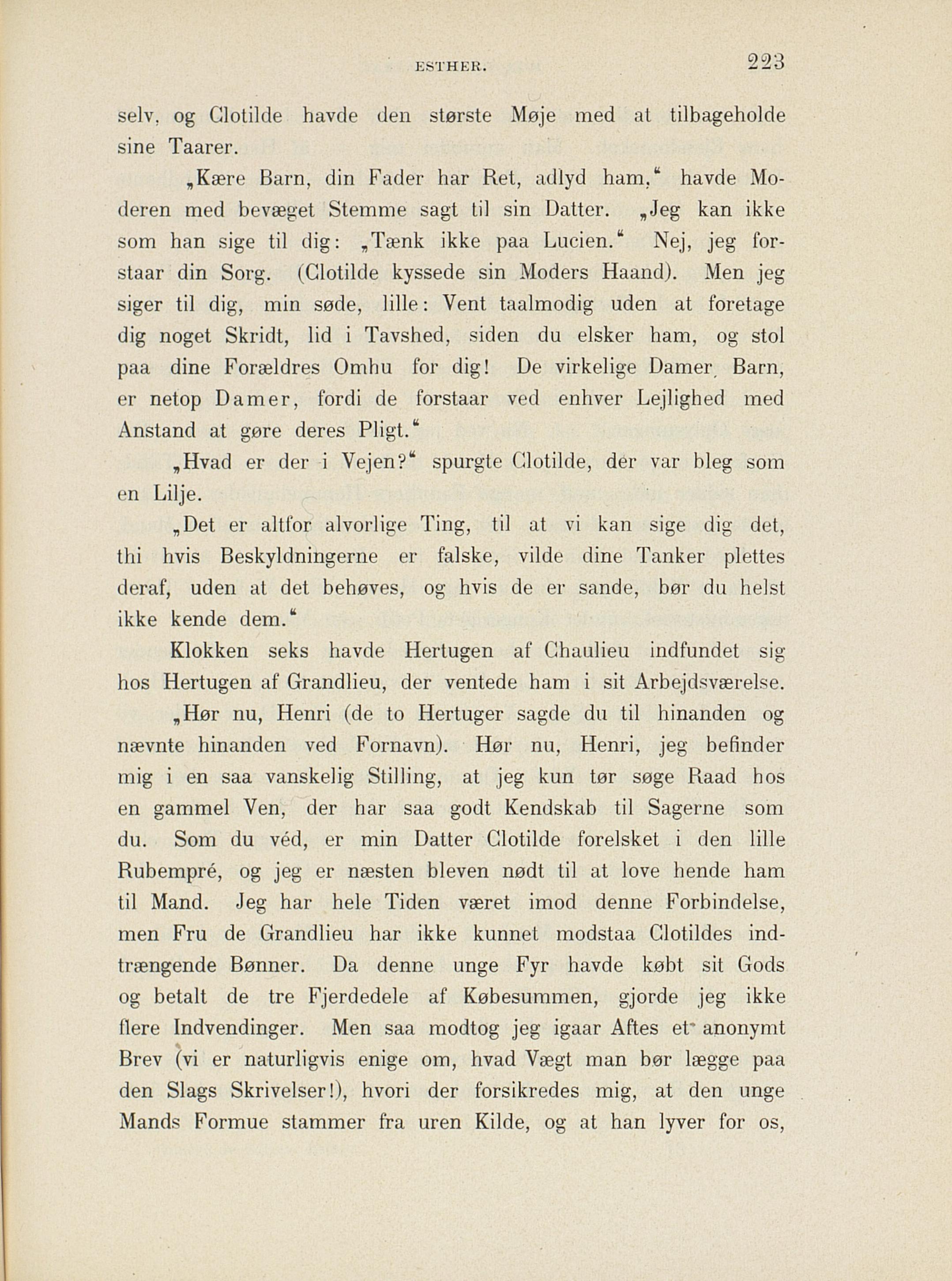 staar din Sorg. (Clotilde kyssede sin Moders Haand). Men jeg