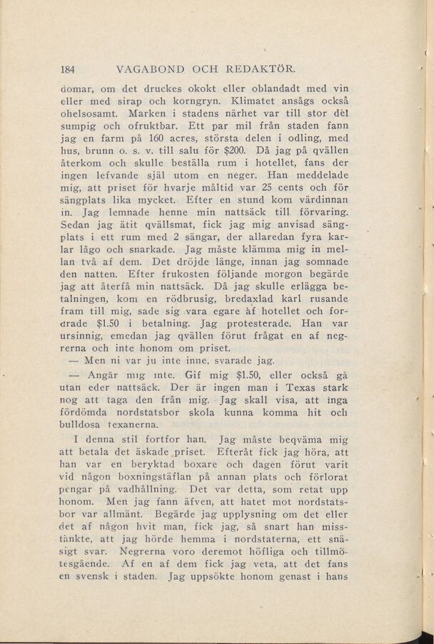 fordrade $1.50 i betalning. Jag protesterade. Han var