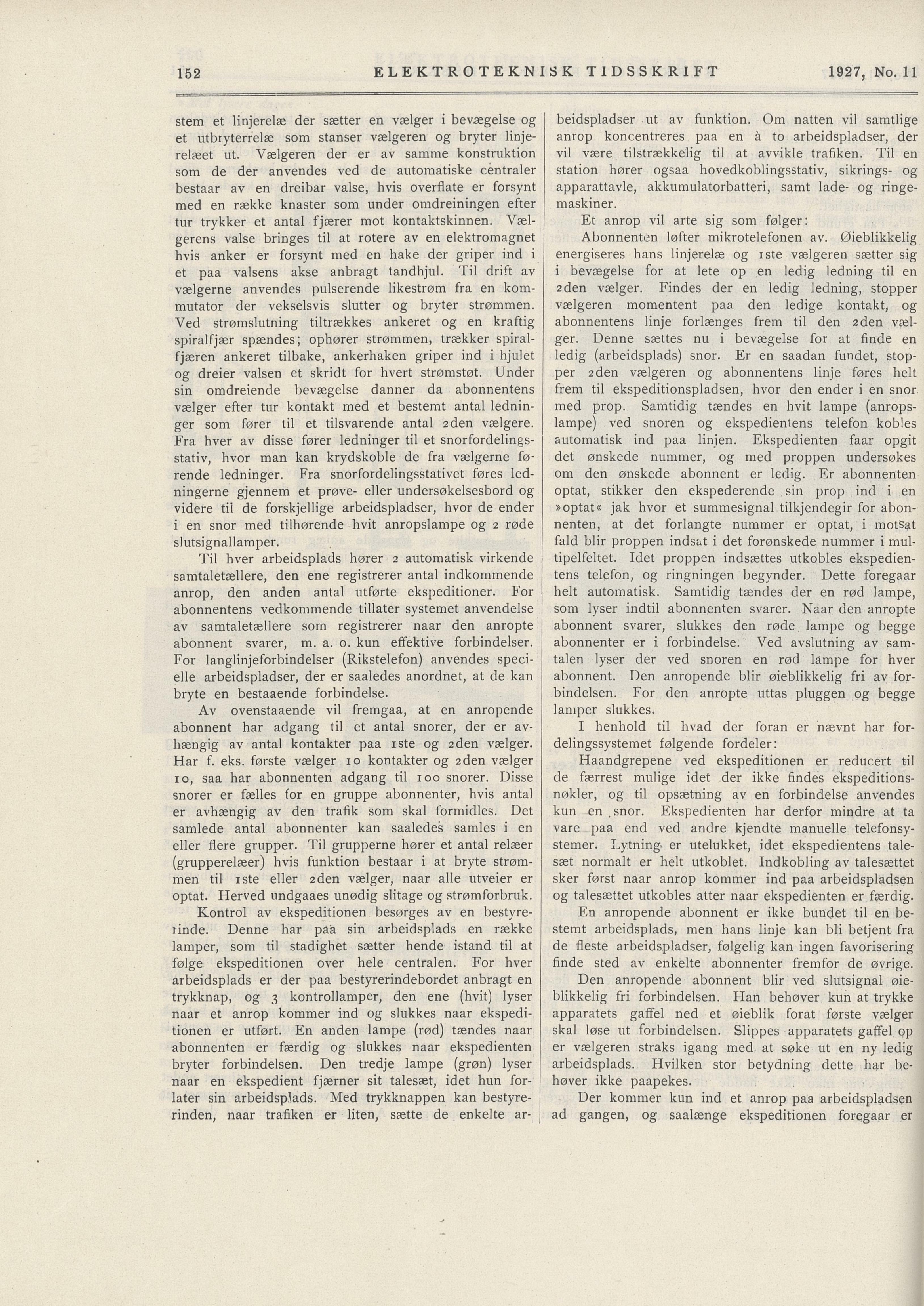 ELEKTROTEKNISK TIDSSKRIFT 1927, No. 11