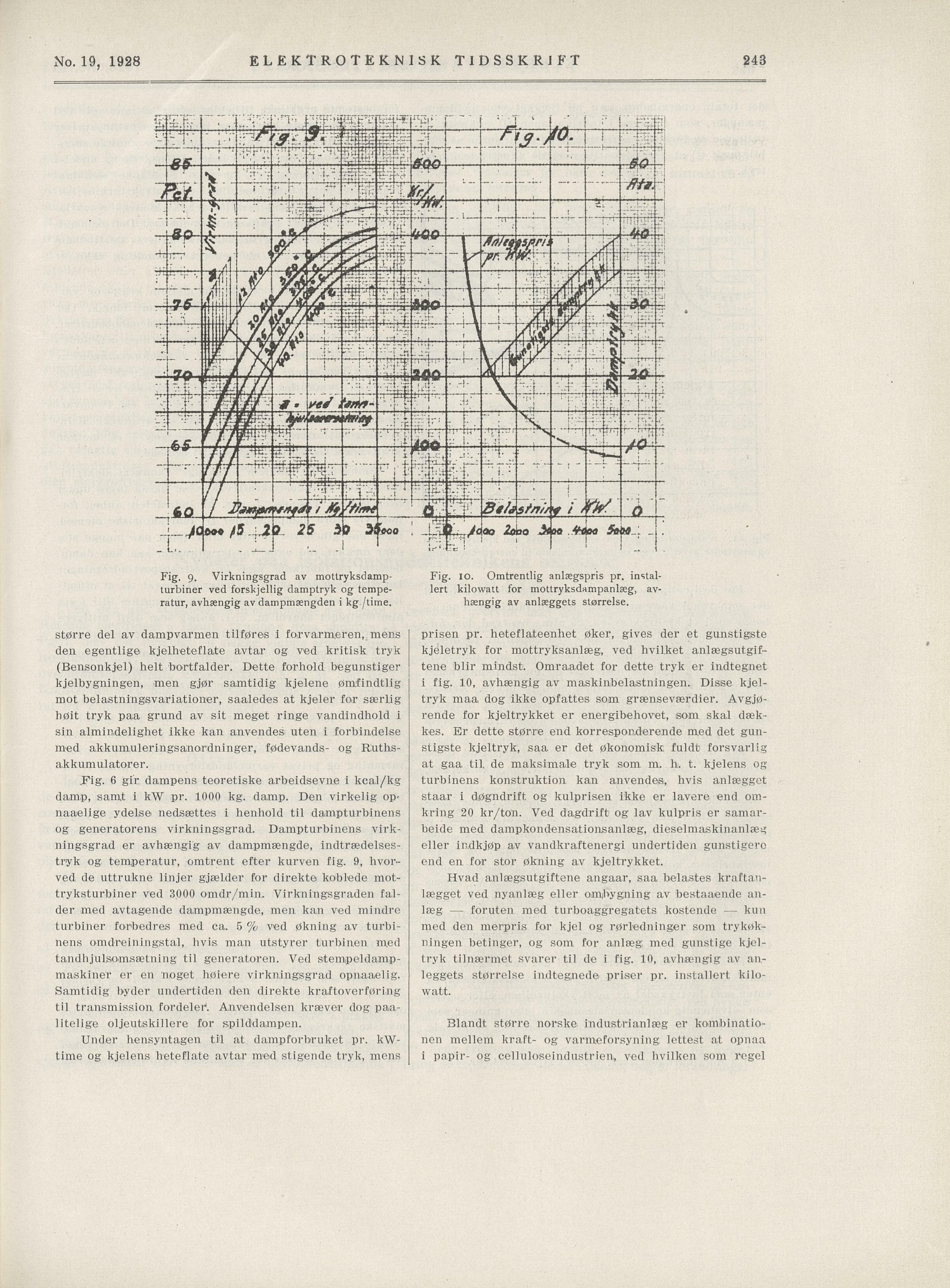 Fig. 9. Virkningsgrad av mottryksdamp