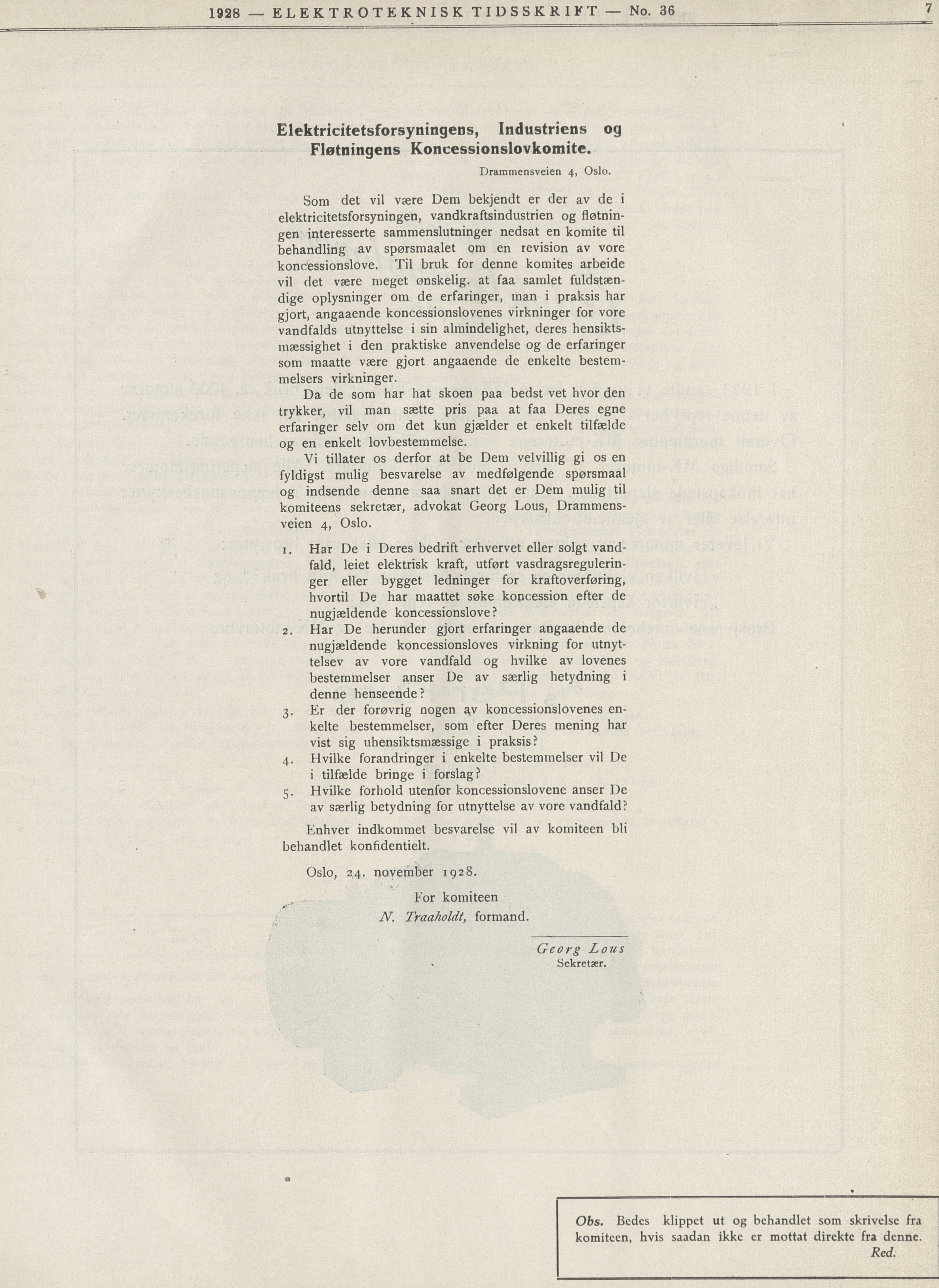 1928 — ELEKTROTEKNISK TIDSSKRIFT — No. 36