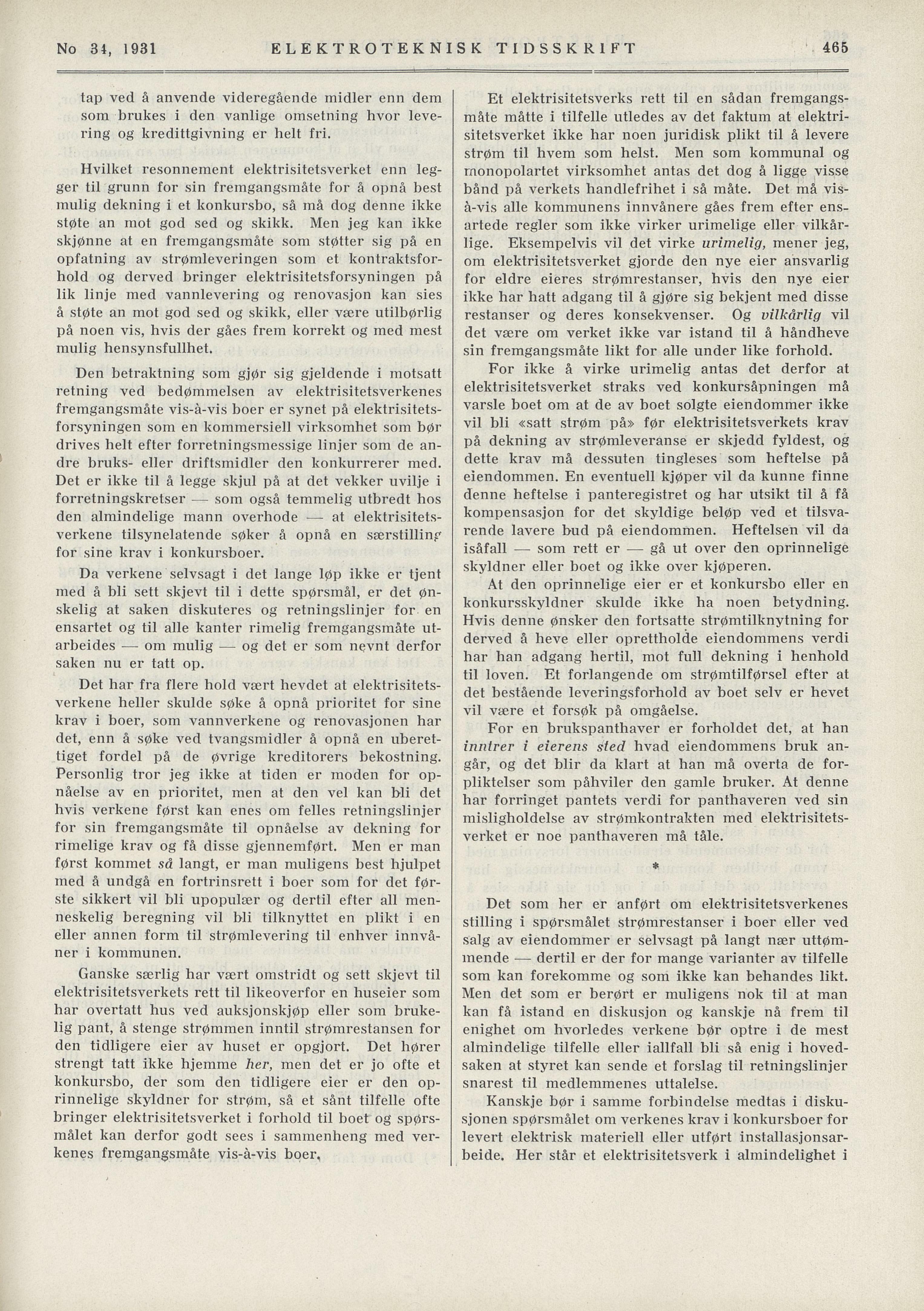 No 34, 1931 ELEKTROTEKNISK TIDSSKRIFT