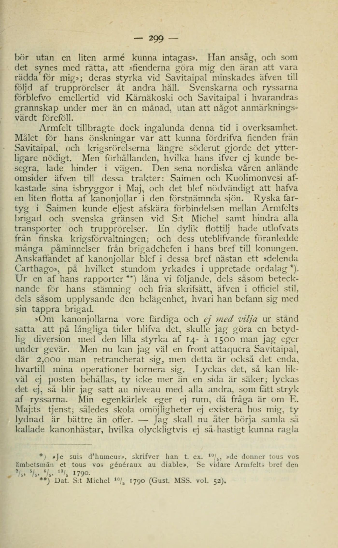 fartyg i Saimen kunde eljest afskära förbindelsen mellan Armfelts