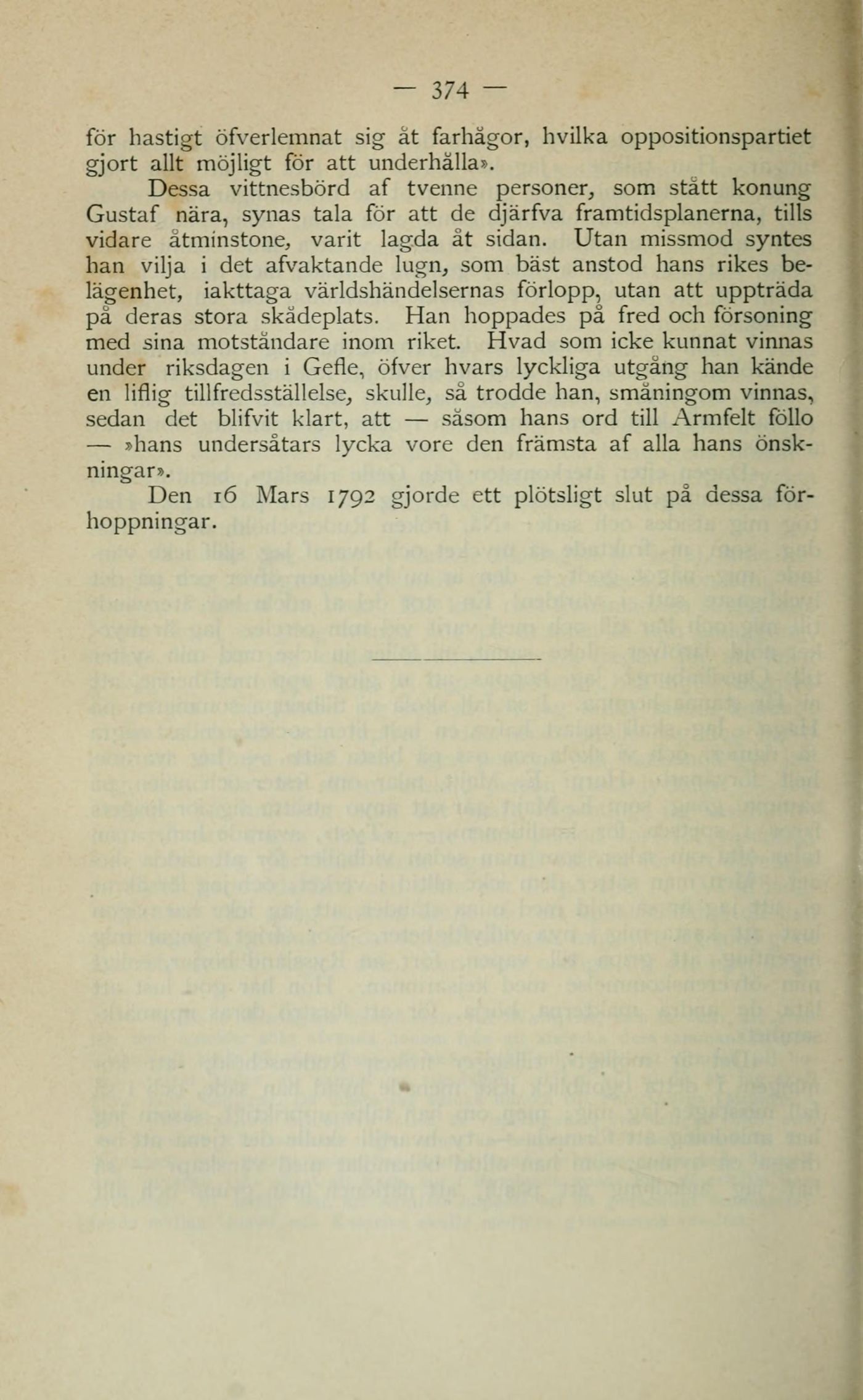 Den 16 Mars 1792 gjorde ett plötsligt slut på dessa