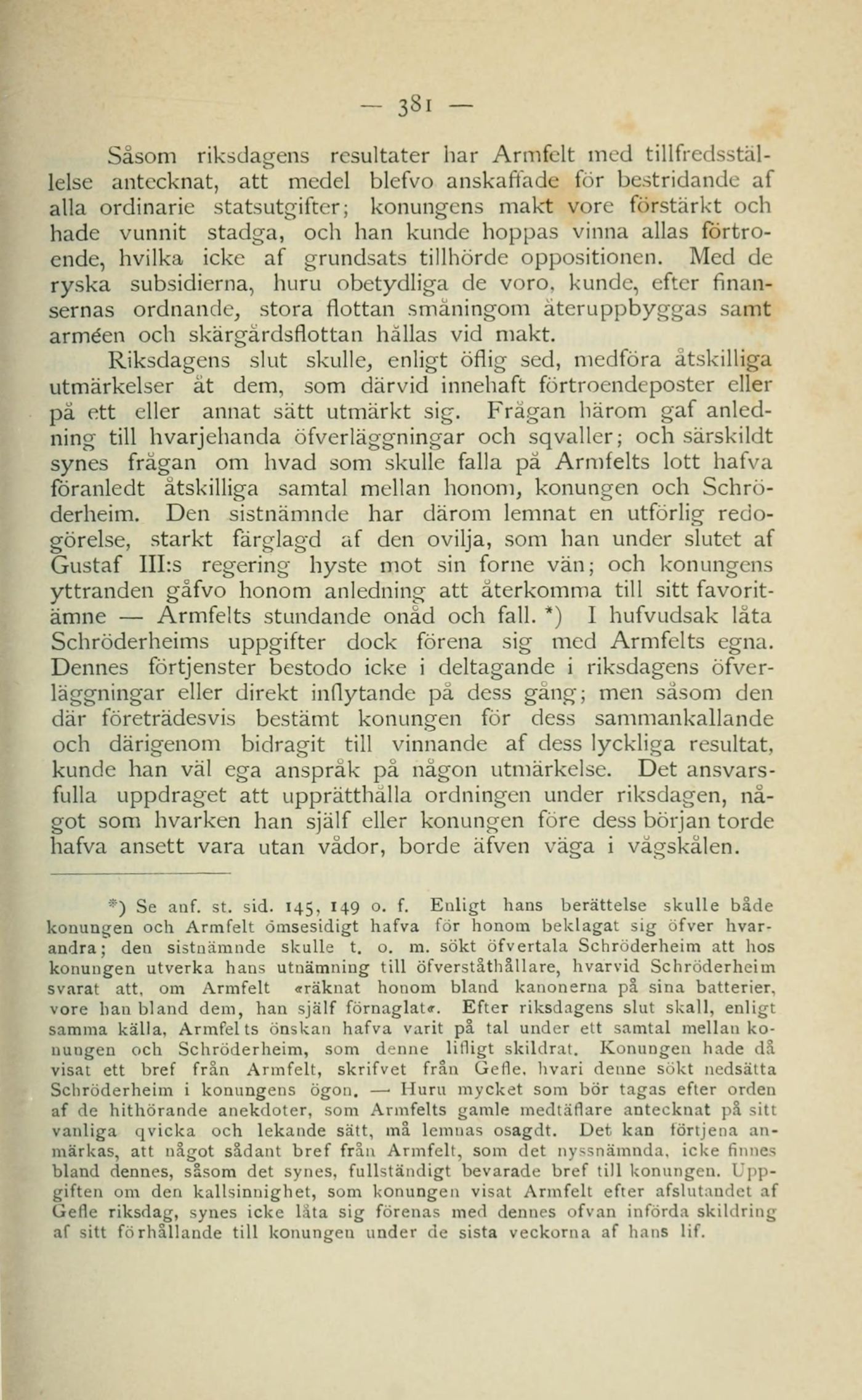 favoritämne — Armfelts stundande onåd och fall. [1] I hufvudsak låta