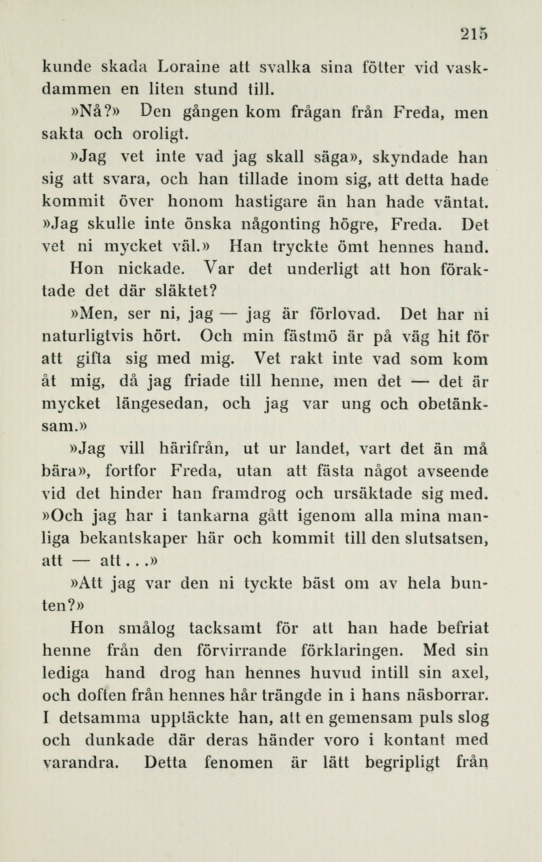 »Men, ser ni, jag — jag är förlovad. Det har ni
