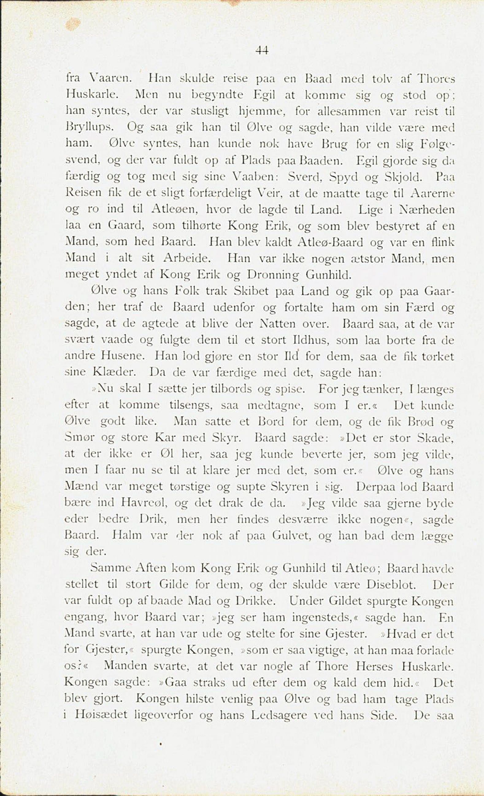 Samme Aften kom Kong Erik og Gunhild til Atleo; Baard havde