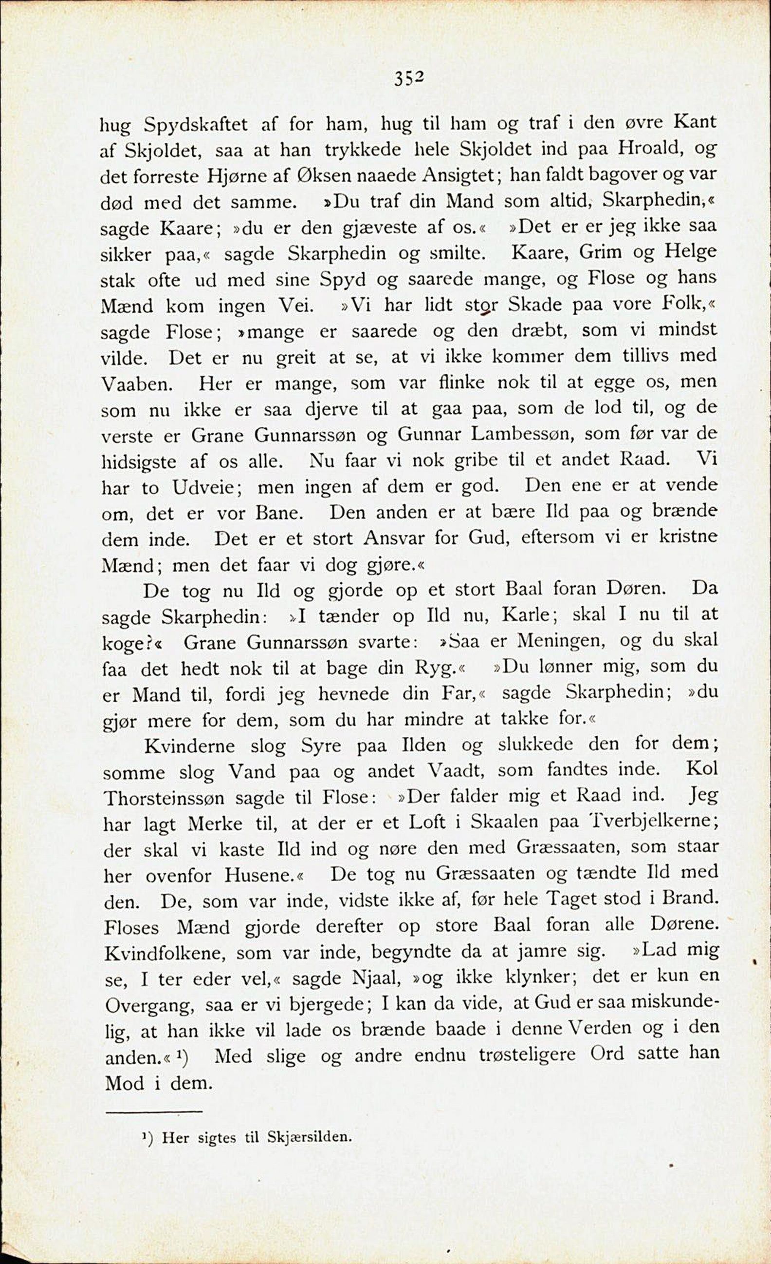sagde Skarphedin: »I tænder op Ild nu, Karle; skal I nu til at