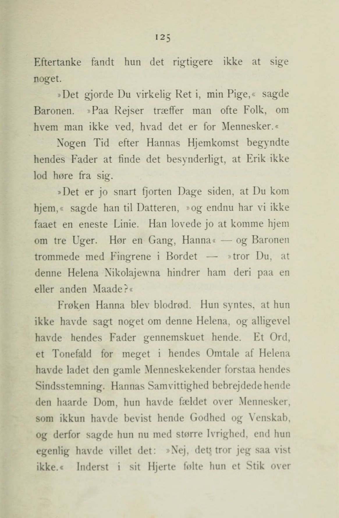 om tre Uger. Hør en Gang, Hanna« — og Baronen