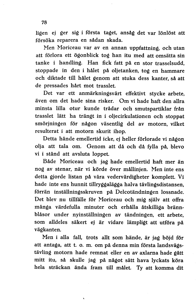 landsvägstävling motorn hade remnat eller en av axlarna hade gått