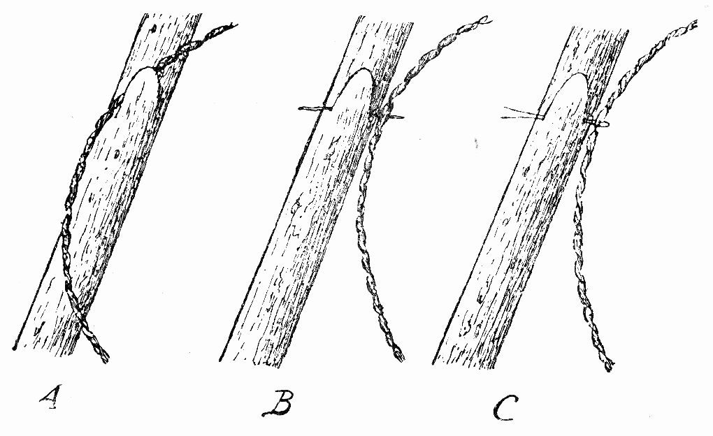 slinga om snaran och nedtryckas dubbla i skärningen, fig. 7 C.