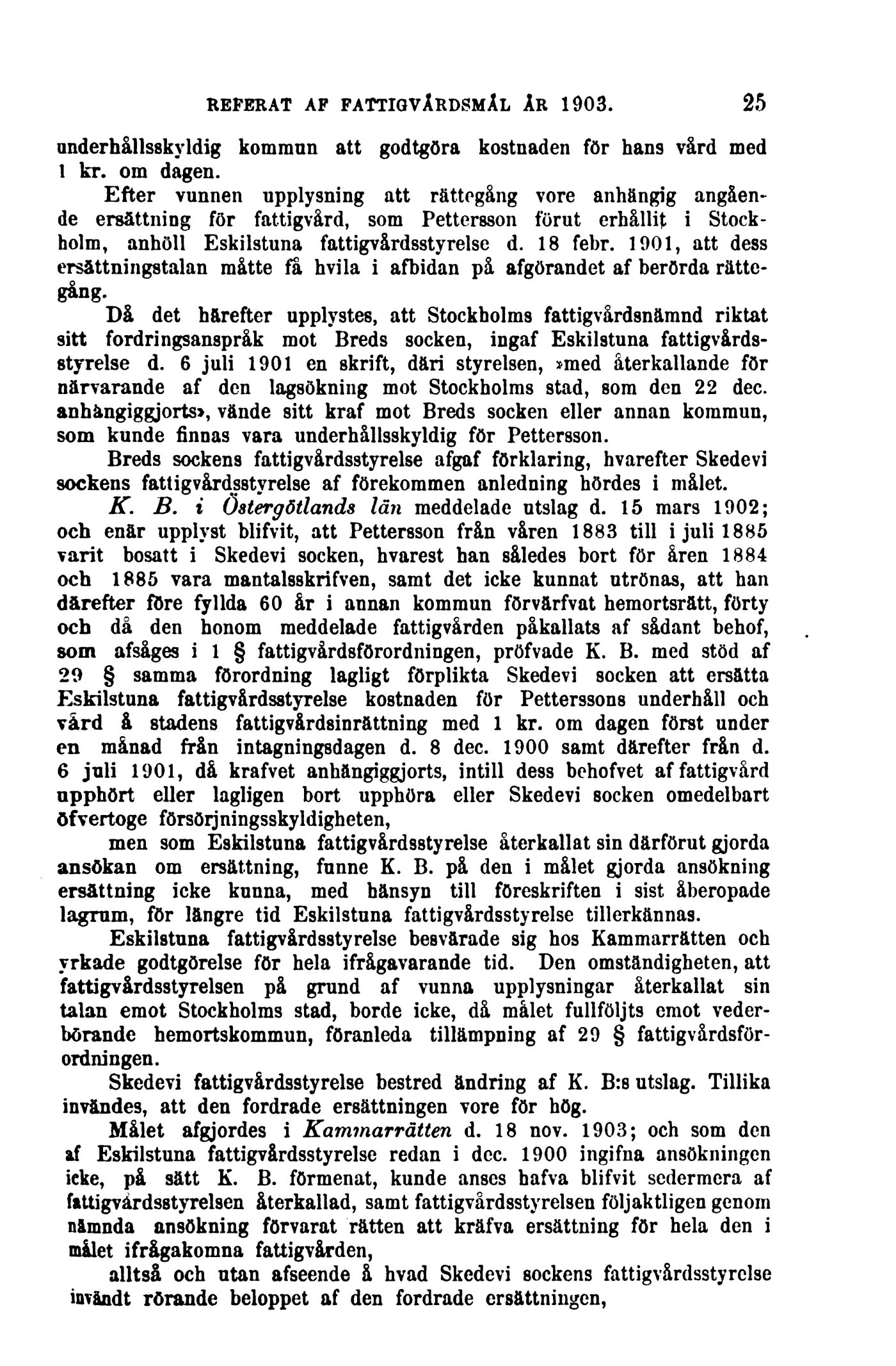 Målet afgjordes i Kammarrätten d. 18 nov. 1903; och som den