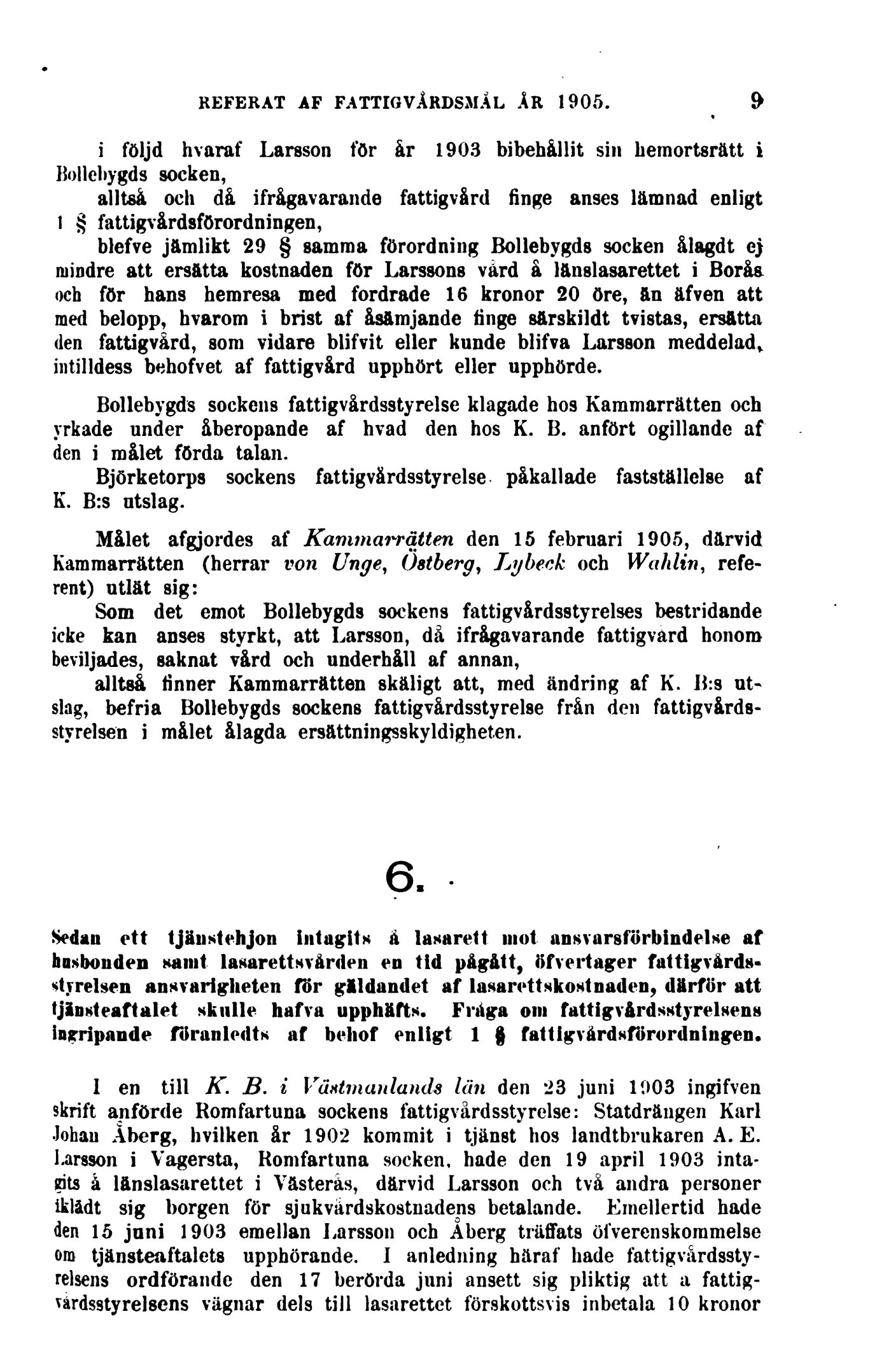Målet afgjordes af Kammarrätten den 15 februari 1905, därvid