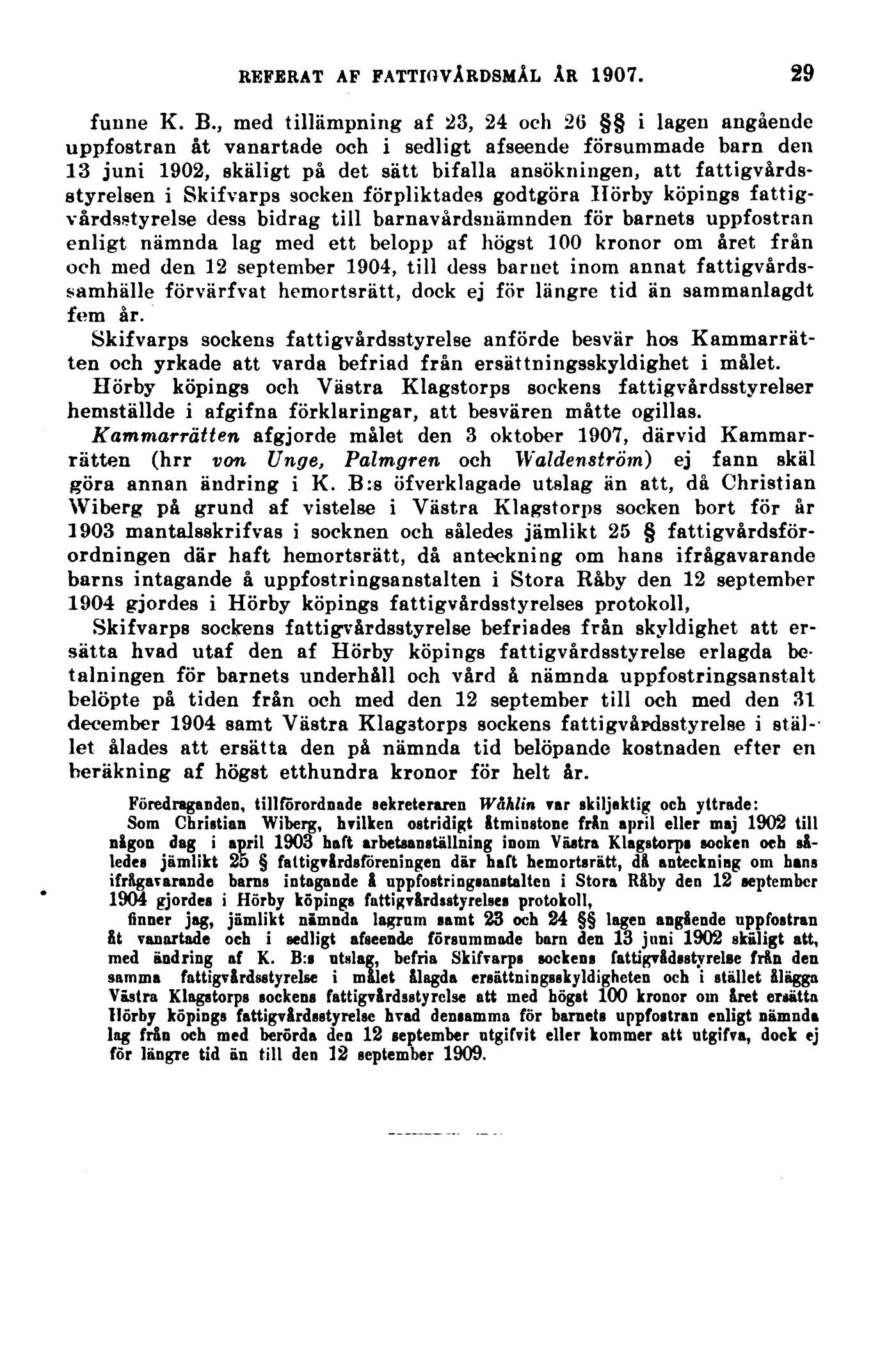 Kammarrätten afgjorde målet den 3 oktober 1907, därvid