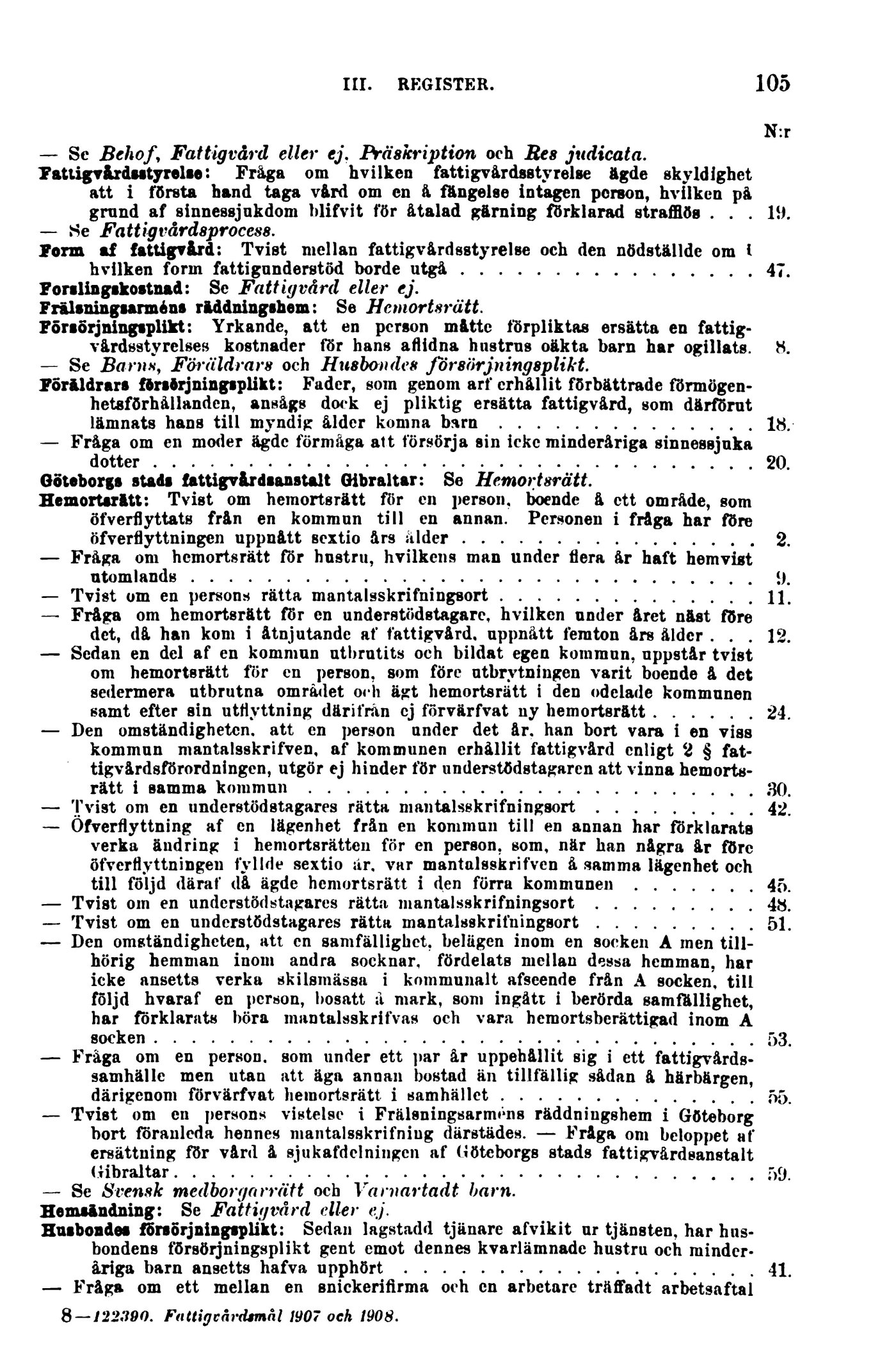 8 —122390. Fattig vårdsmål 1907 och 1908.