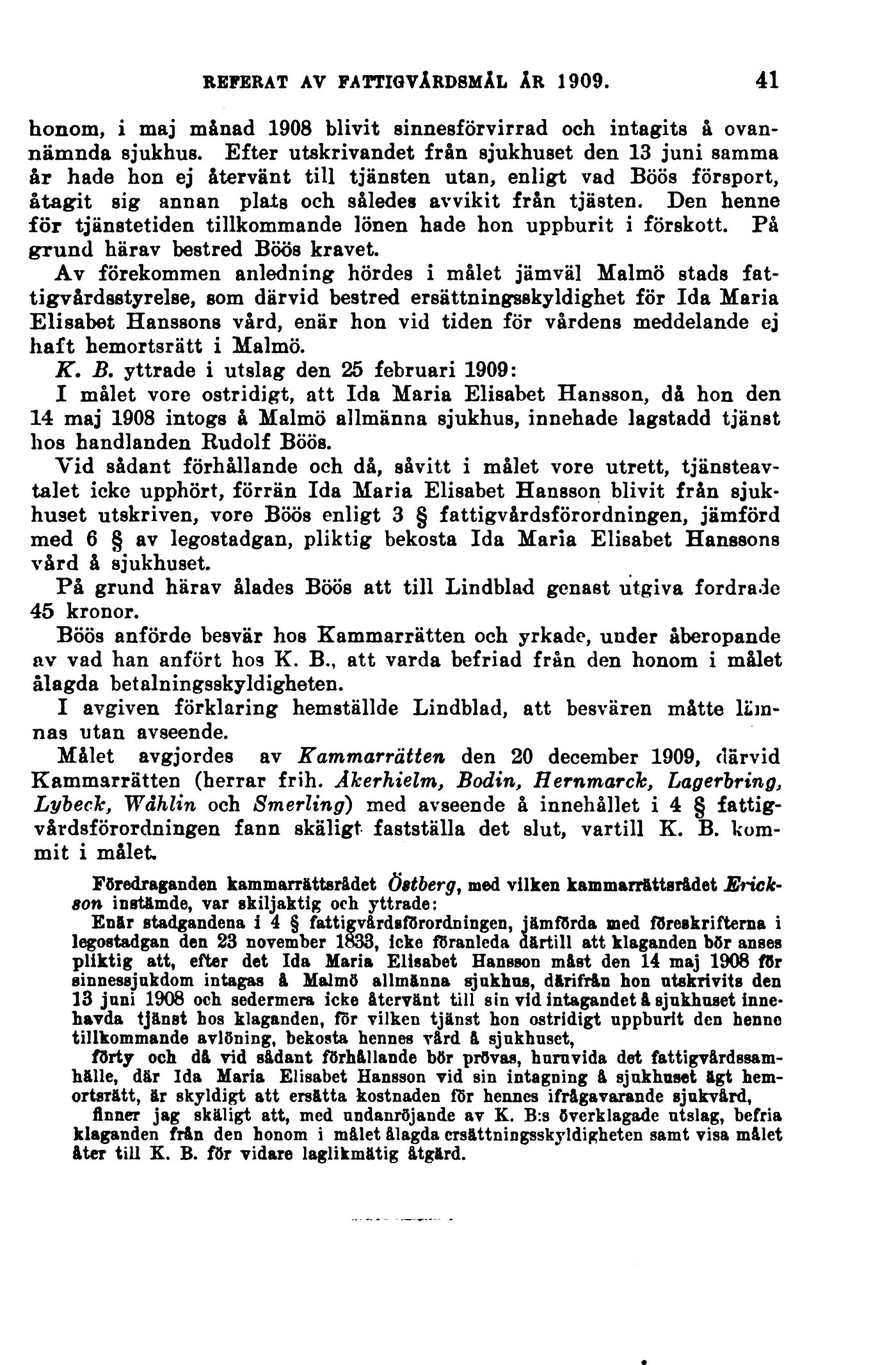 Målet avgjordes av Kammarrätten den 20 december 1909, därvid