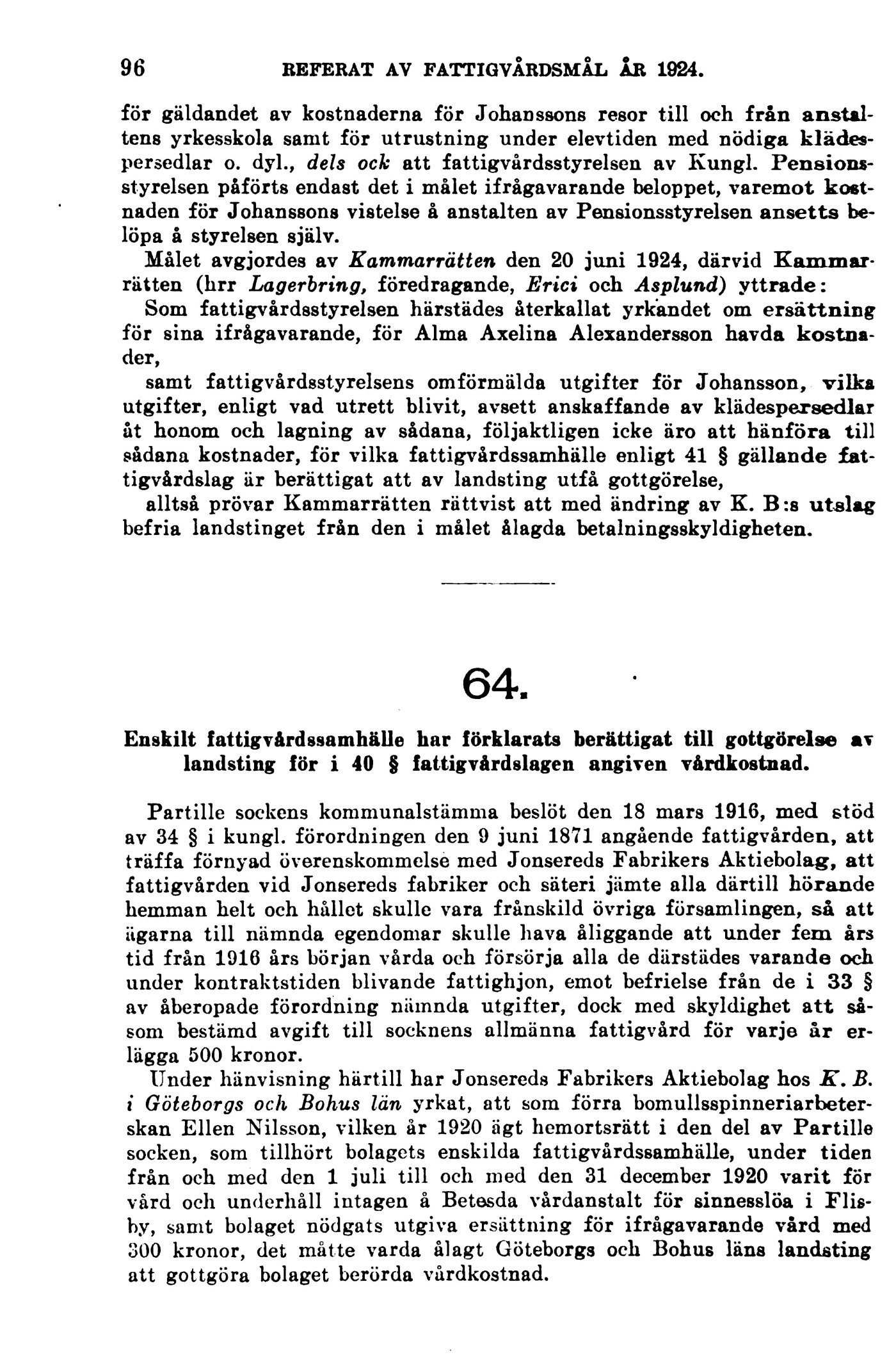Målet avgjordes av Kammarrätten den 20 juni 1924, därvid