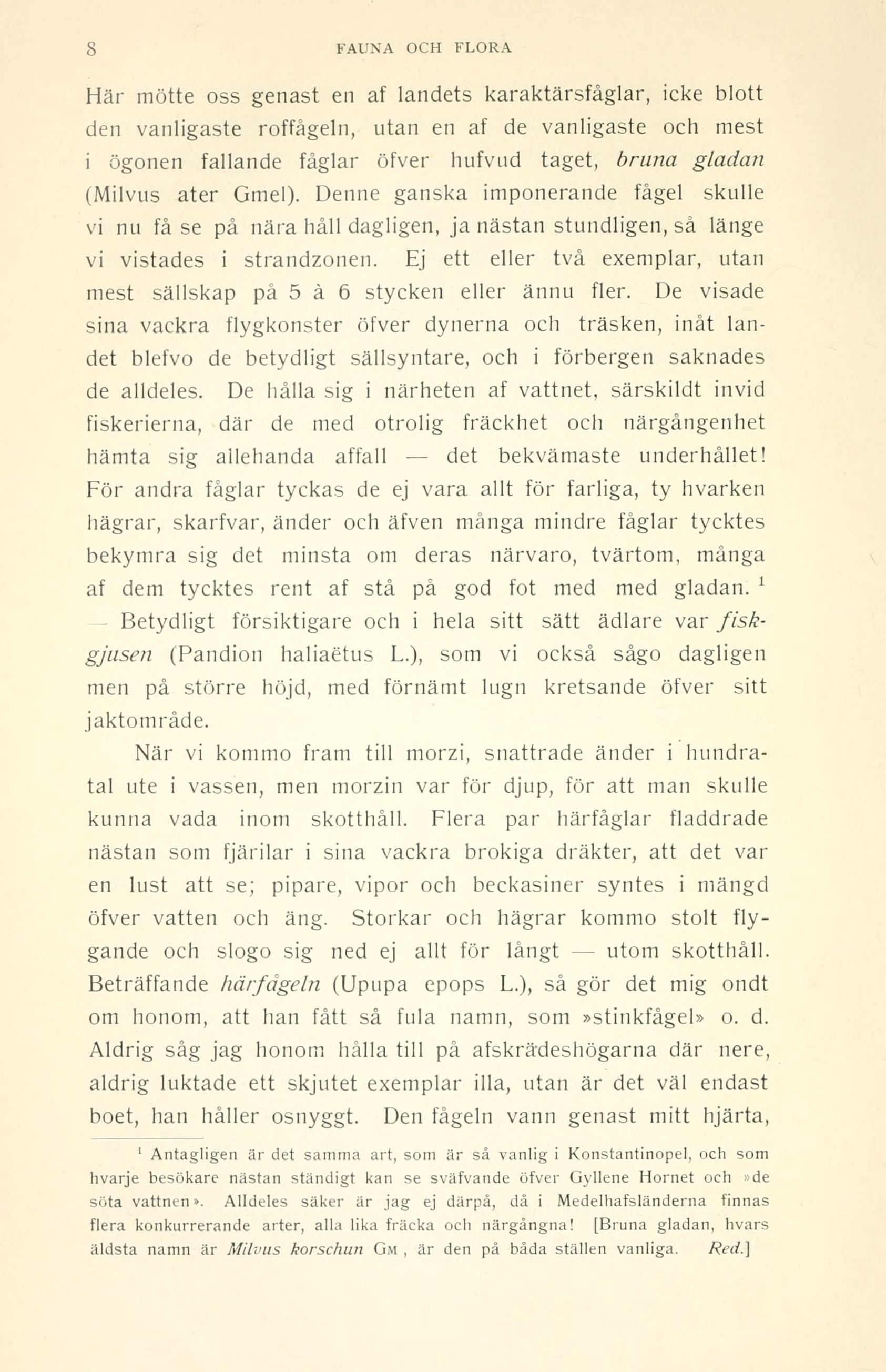 i ögonen fallande fåglar öfver hufvud taget, bruna gladan