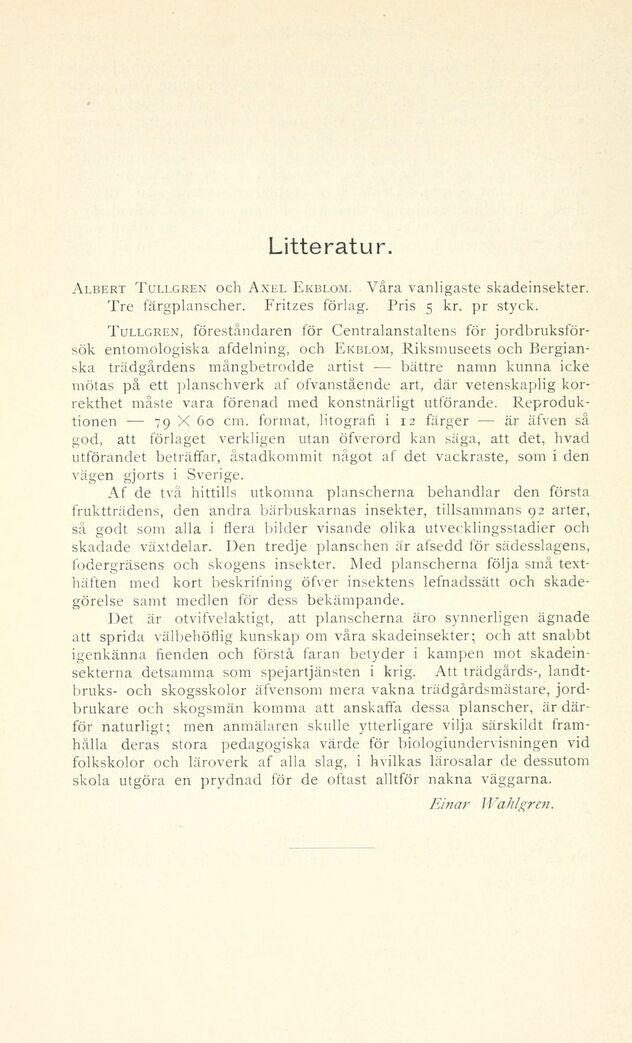 Albert Tullgren och Axel Ekblom. Våra vanligaste skadeinsekter.
