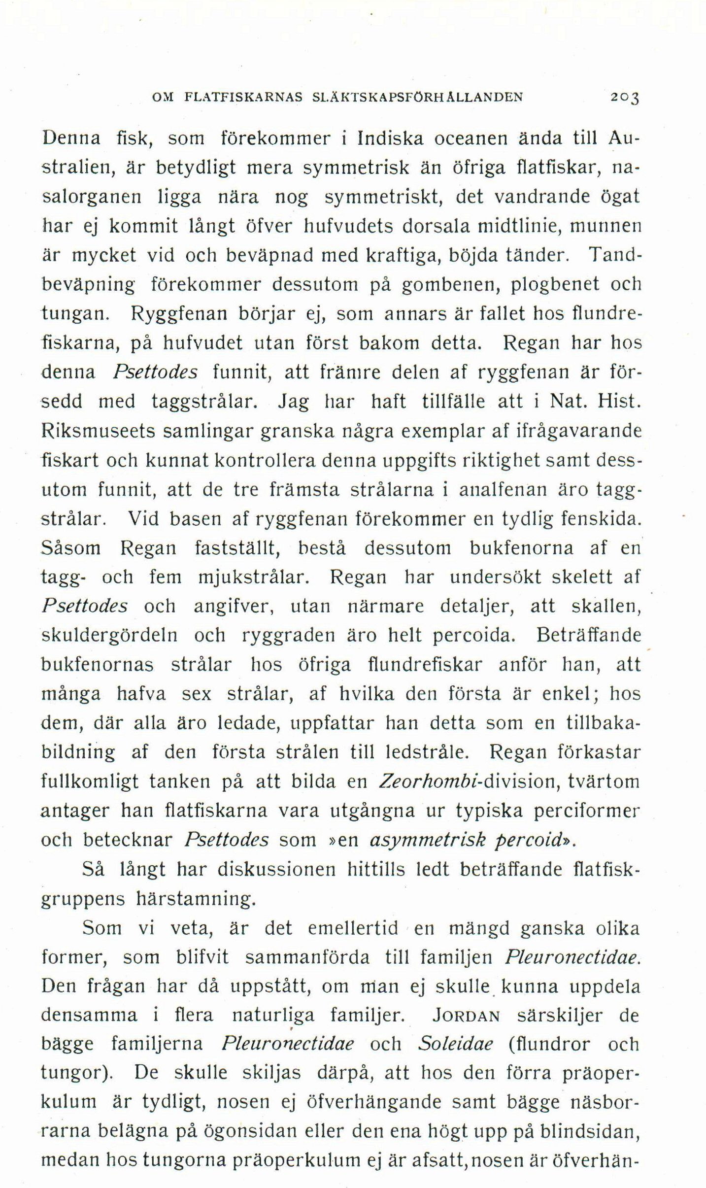 OM FLATFISKARNAS SLÄKTSKAPSFÖRHÅLLANDEN 203
