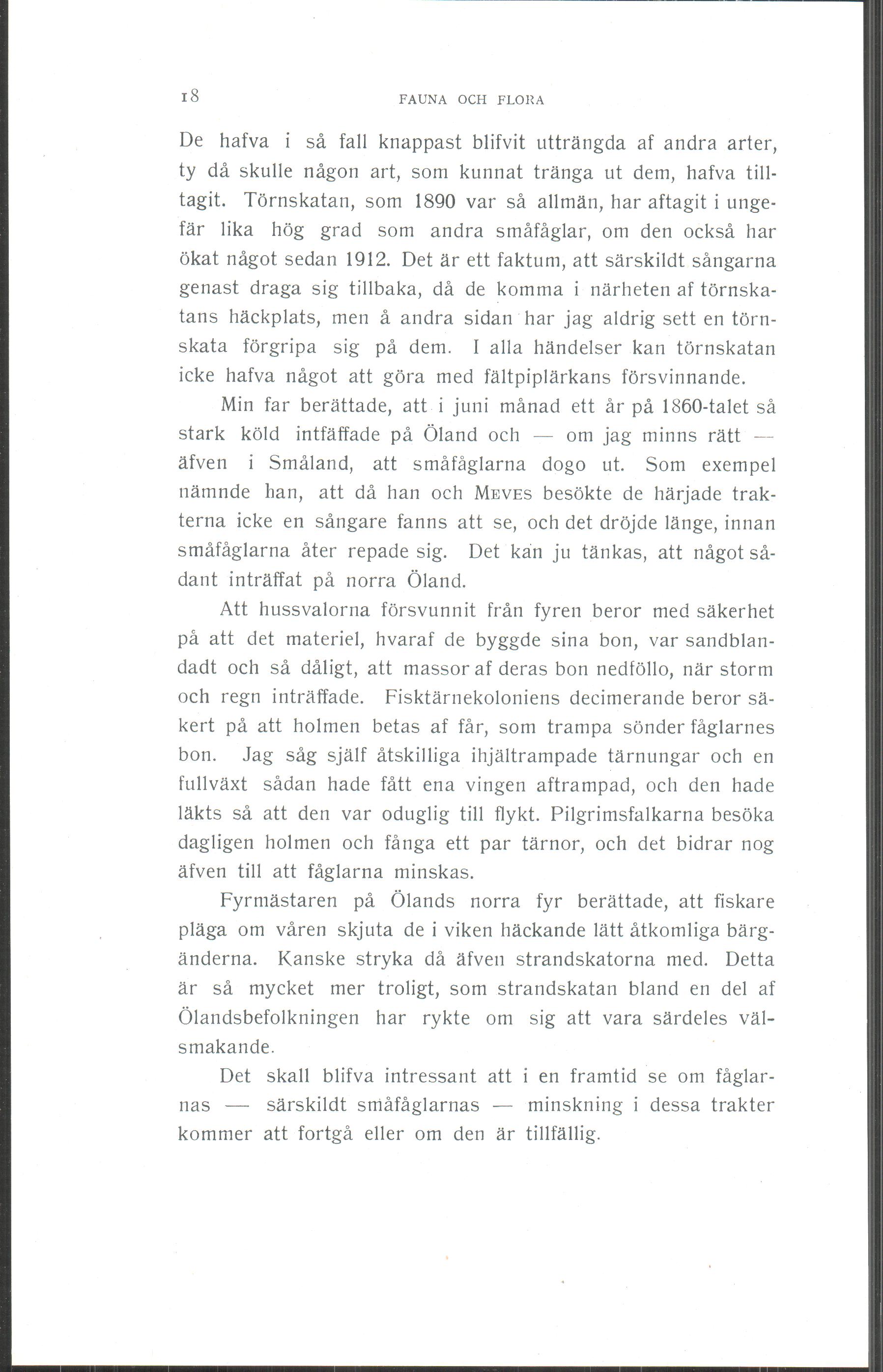 säkert på att holmen betas af får, som trampa sönder fåglarnes