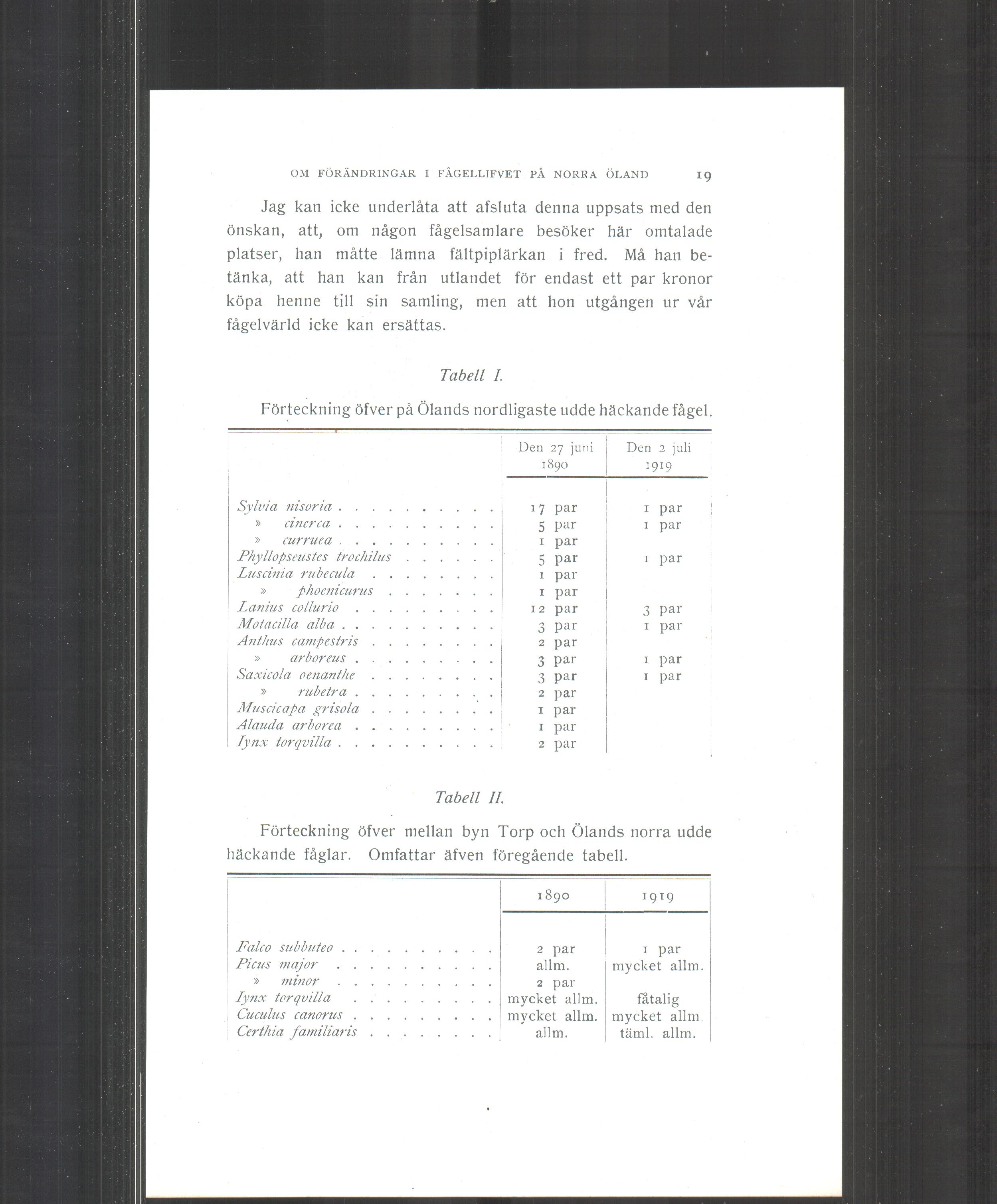 OM FÖRÄNDRINGAR I FÅGELLIFVET PÅ NORRA ÖLAND 19