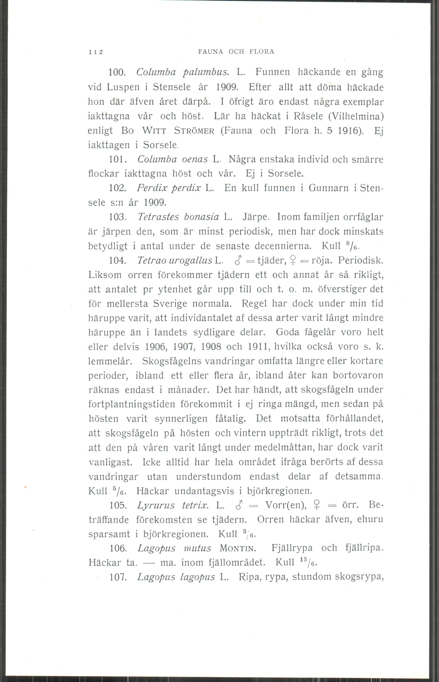 104. Tetrao urogallusL. J1 = tjäder, $= röja. Periodisk.