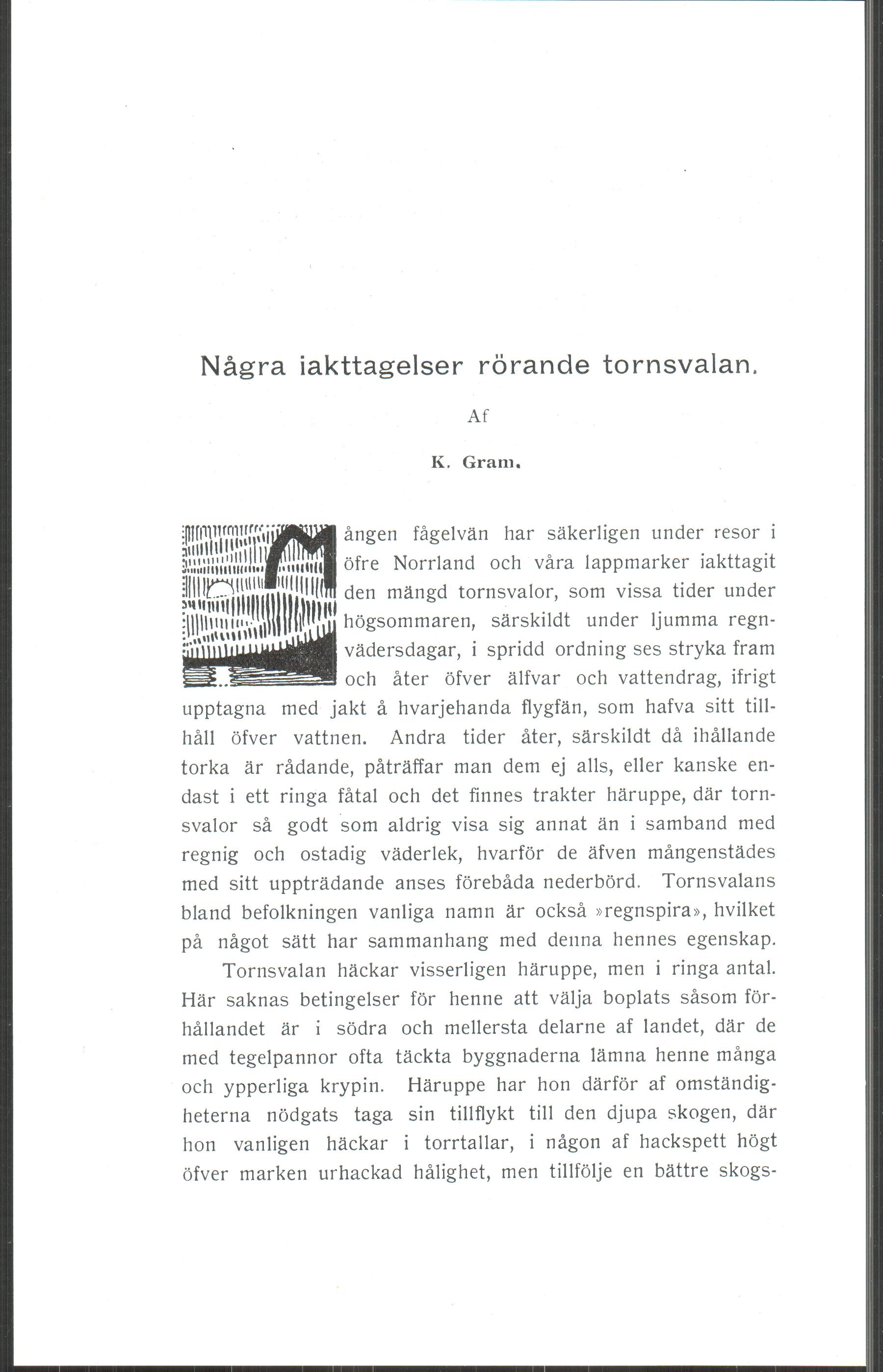 Några iakttagelser rörande tornsvalan.