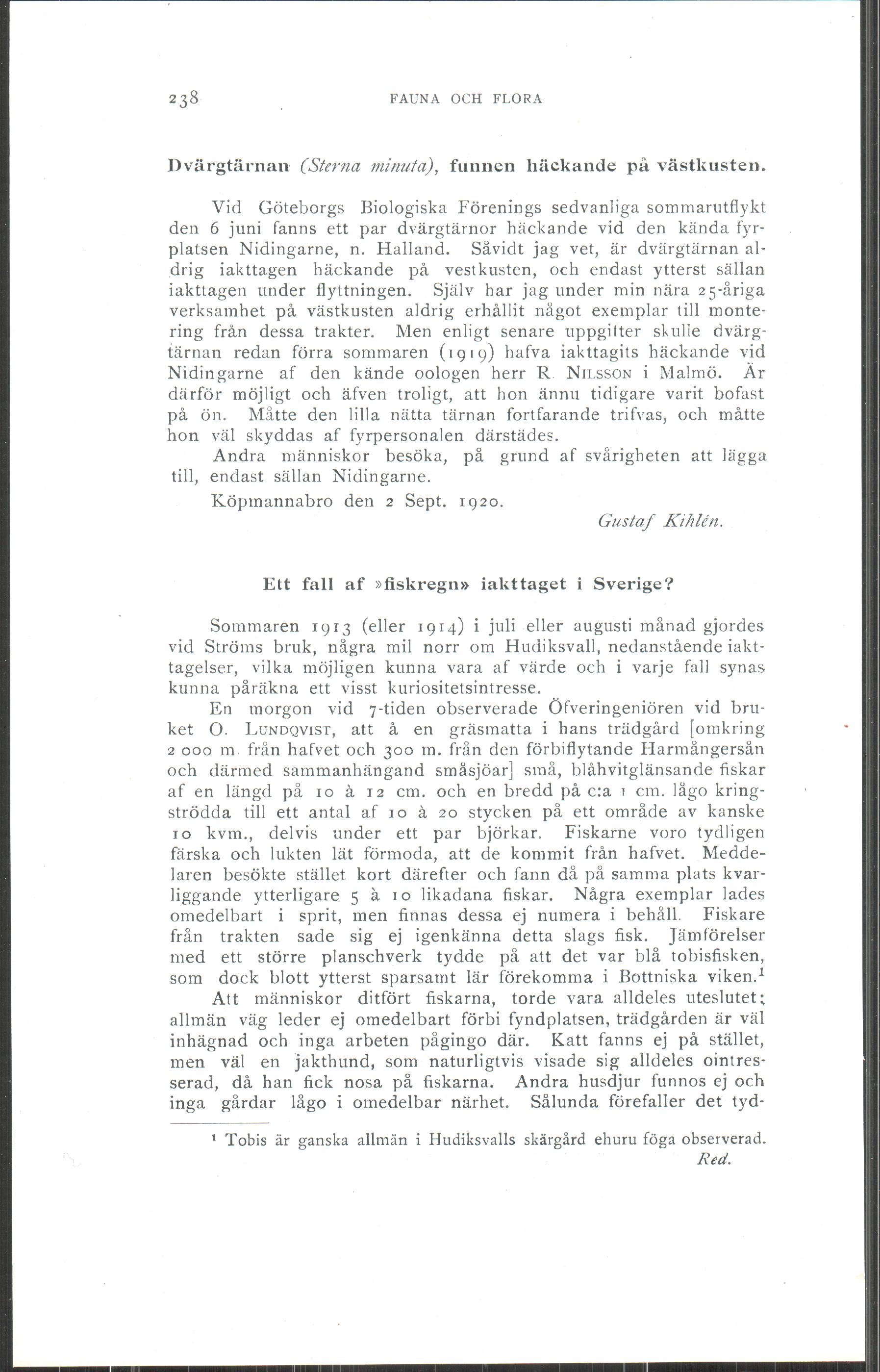 dvärgtärnan redan förra sommaren (1919) hafva iakttagits häckande vid