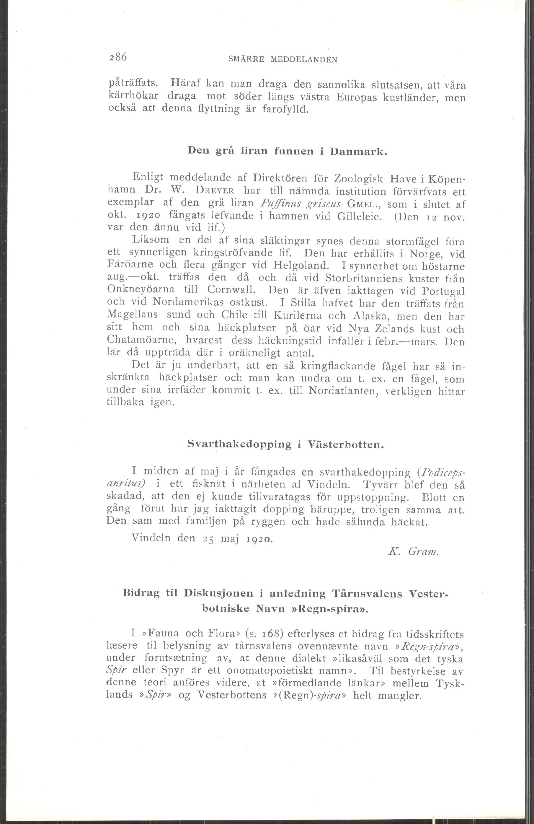 I »Fauna och Flora» (s. 168) efterlyses et bidrag fra tidsskriftets