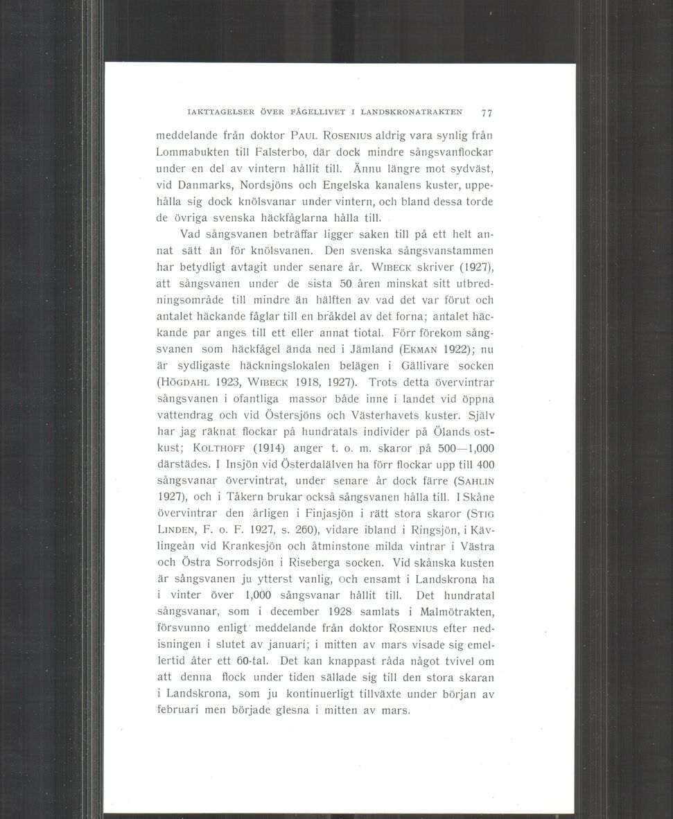 1927), och i Tåkern brukar också sångsvanen hålla till. I Skåne