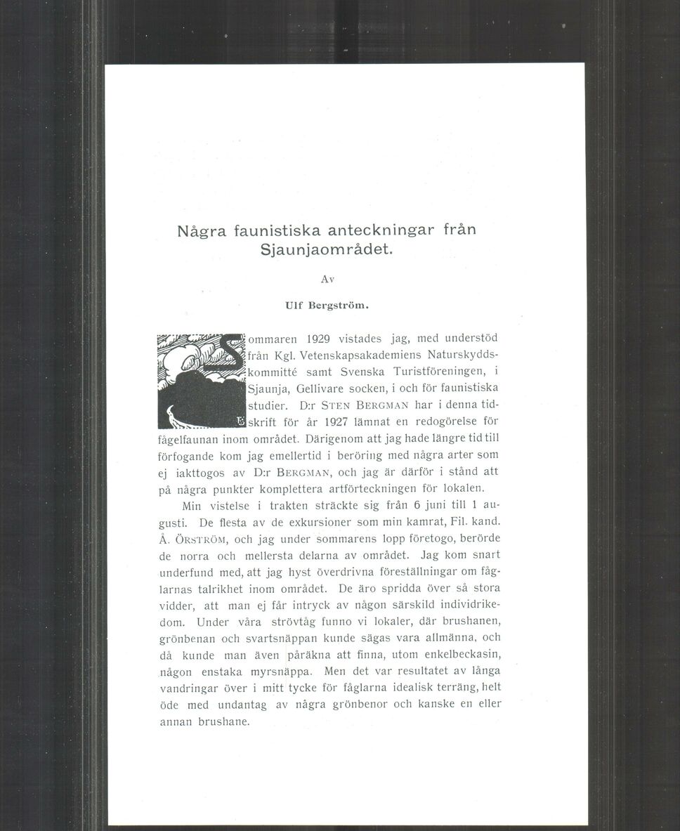 Full resolution (JPEG) - On this page / på denna sida - Några faunistiska anteckningar från Sjaunjaområdet. Av Ulf Bergström
